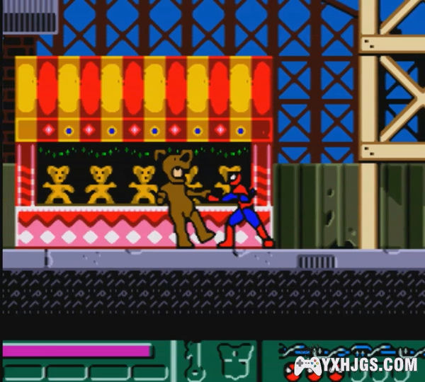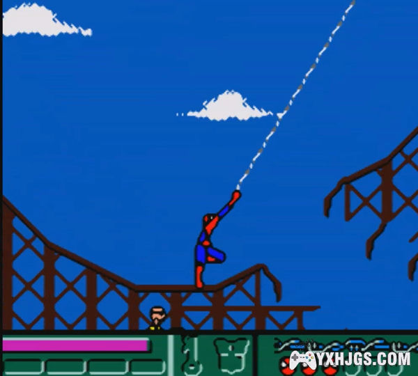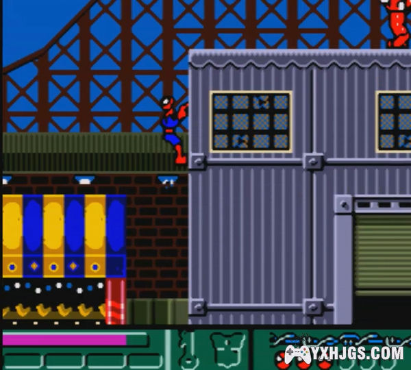 横版动作游戏,作为GBC游戏而言色彩很不错,蜘蛛侠可以攀附在场景的任何地方,或则在空中荡起蛛丝绕过对手,是款出色的漫改作品。