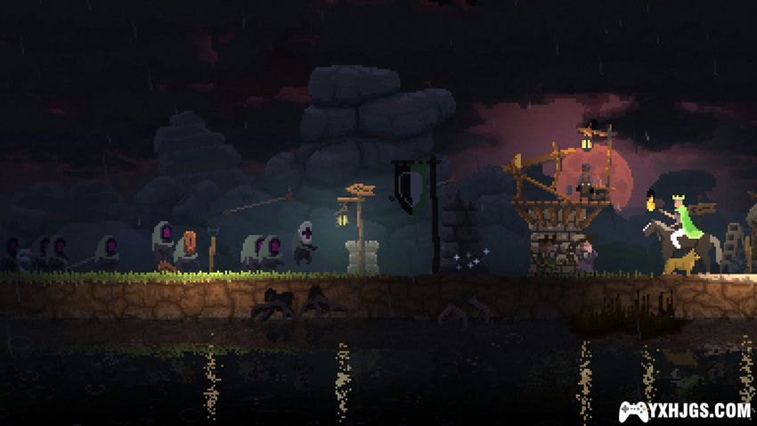 成为君主,旅行到新的土地和找到新坐骑,遇见洪水商人和流浪者,建立自己的家园。但要警惕威胁,训练士兵和建设城墙,防止夜晚那些可怕的生物袭击。