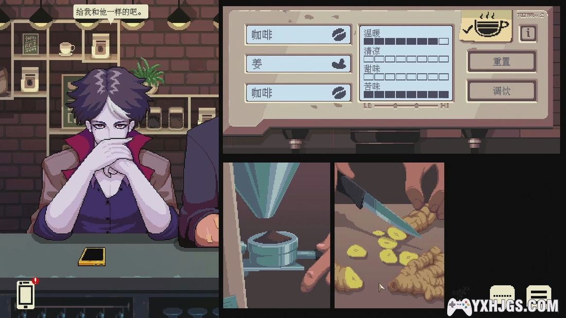 会有很多不同种族的顾客,需要根据不同的角色制作不同的咖啡,解锁剧情和奖励。根据玩家的选择不同,后续发展也会有分支。在好似避风港的咖啡店,聆听烦恼,宣泄情绪,是一款剧情向的治愈游戏。
