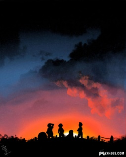 夕阳西下,几个小伙伴在祭祀石像旁的高地上把栏杆拍遍,俯瞰着整个小镇,赤红的晚霞,凄美的夕阳,温暖的小镇,和几个依依不舍分别,被各自爸妈叫回家吃饭的小伙伴,这幅画面绝对可以给你心灵极大的震撼。在一个月后,主角将要远离他乡,这个秘密基地来一次少一次,这些熟悉的人见一面少一面,成长的过程中永远不会缺少分离,个中滋味,也许只有这夕阳的斜晖可以替我表达……