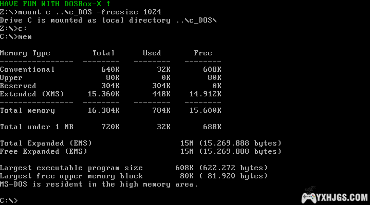 DOSBox下,再也不用担心内存不够了,舒坦