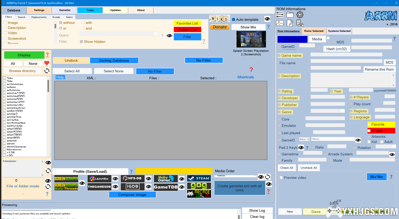 这个刮取软件原理其实是去网站:https://screenscraper.fr/获取游戏的media资源,而且也需要在这个网站注册账号后才能使用。界面就下面这个样子,UI简陋但不影响功能强大。