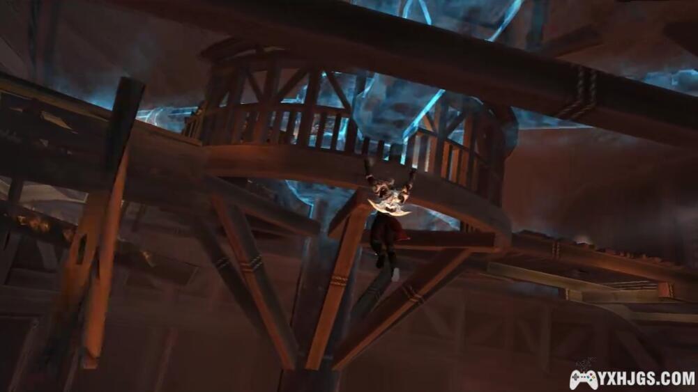 之后,你需要攀登一个梯子和一张网同时要干掉些敌人,当你到达桅杆的顶部时,你可以通过那个横梁往走得到些“红魂”之后顺着绳子荡到另一艘船上。