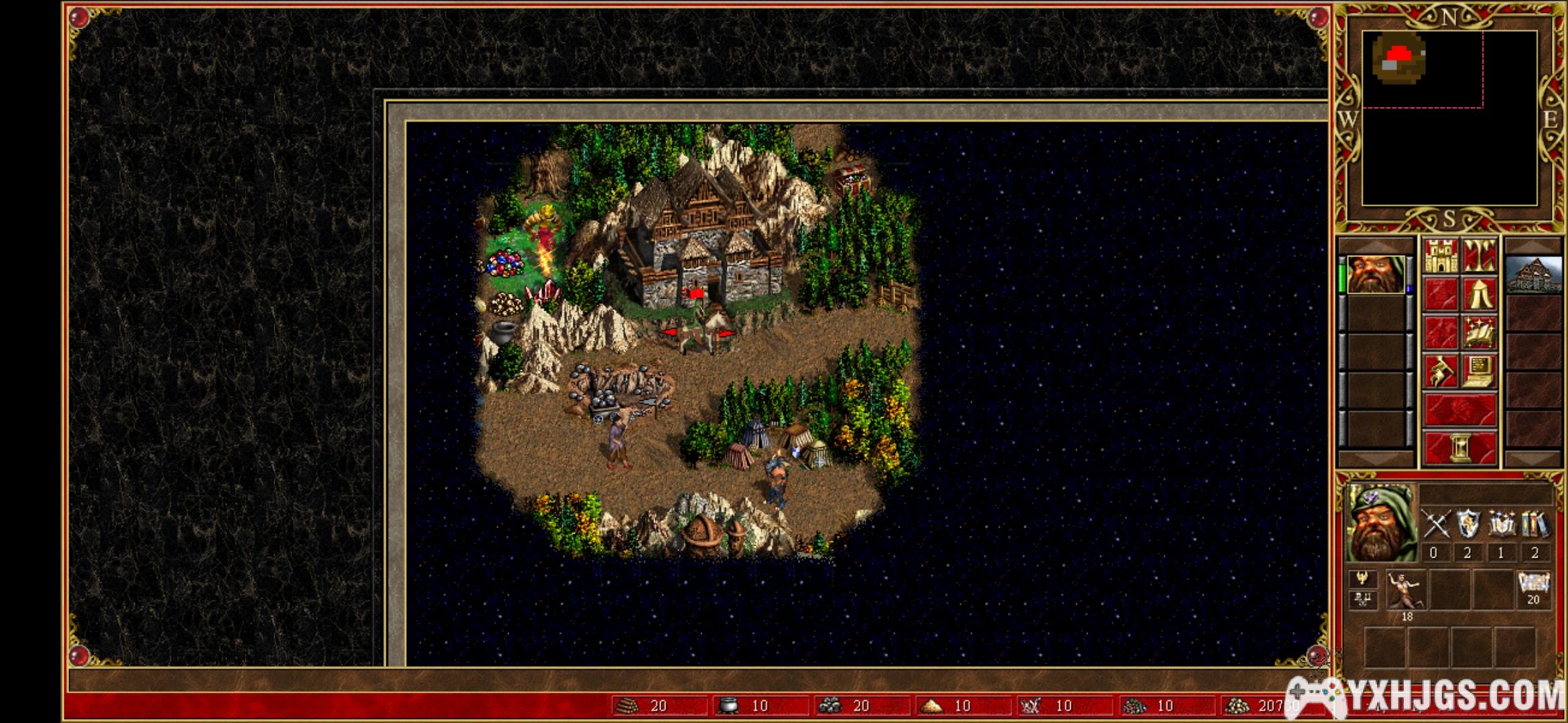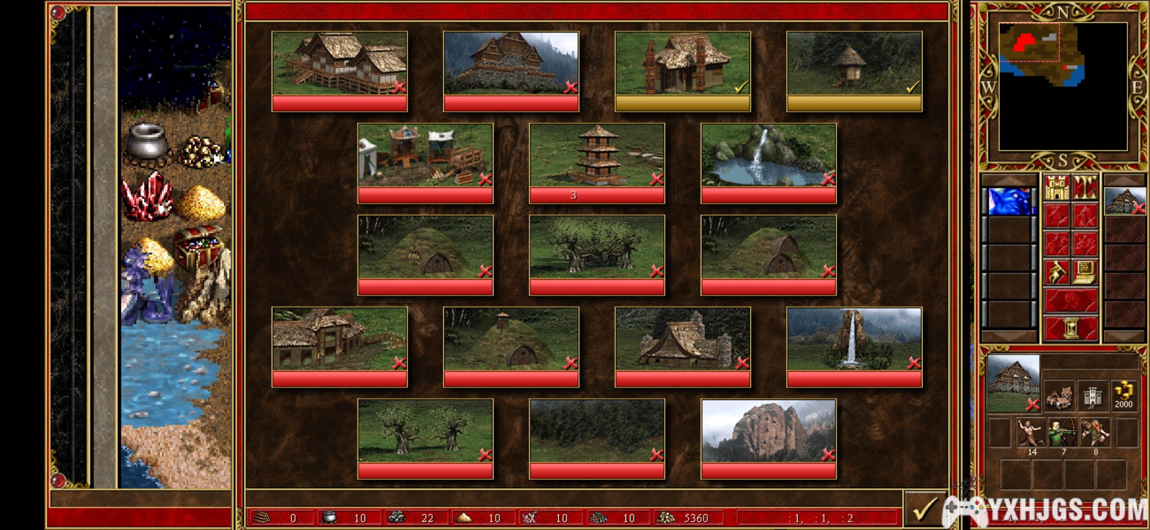 初始选择:10单位木材和矿石,8单位水晶,1级魔法公会。