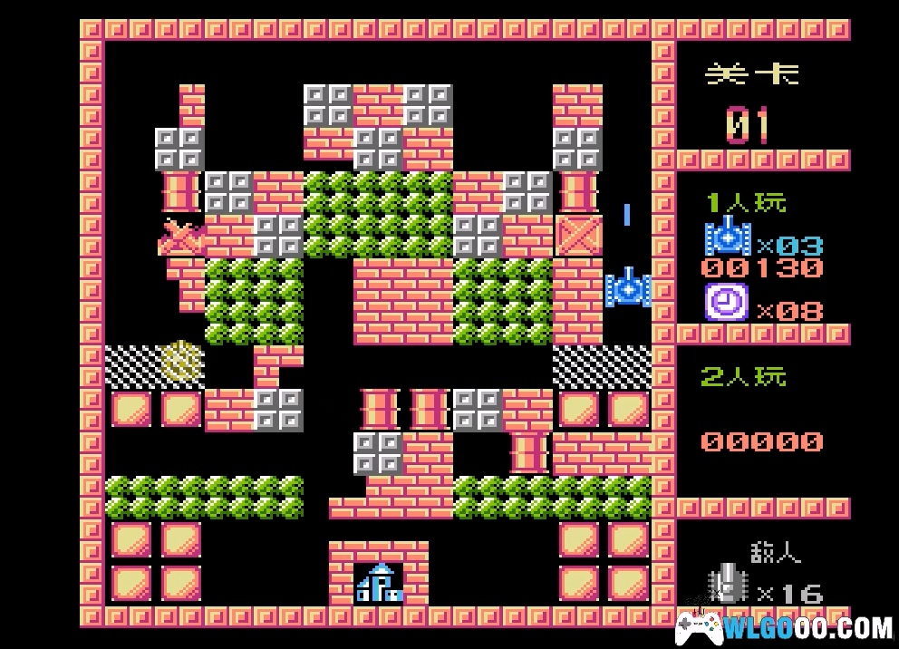 游戏设有35个预设关卡,每关的地形、敌人数量和难度逐渐递增,地形包括砖块、钢板、河流和灌木丛,合理利用地形进行战斗是游戏的重要策略之一。