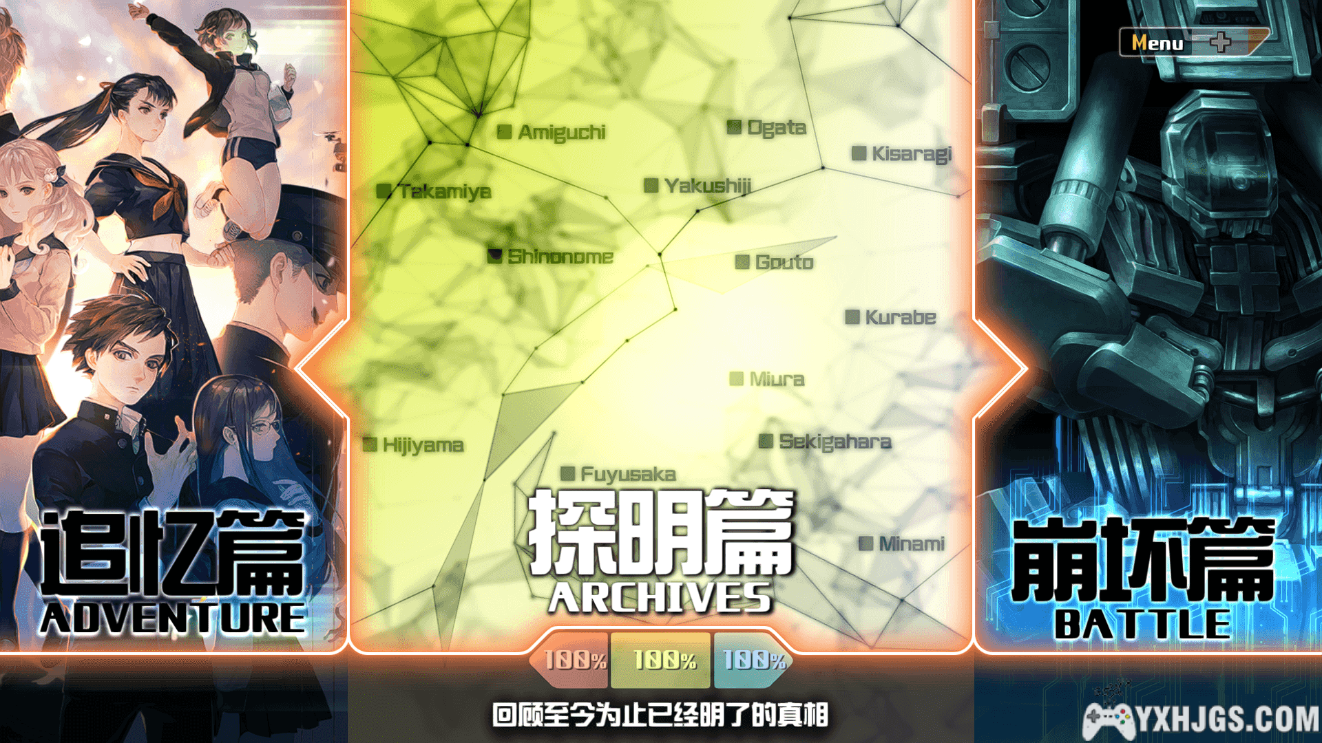 游戏主要分了三部分“追忆篇”“崩坏篇”“探明篇” .
