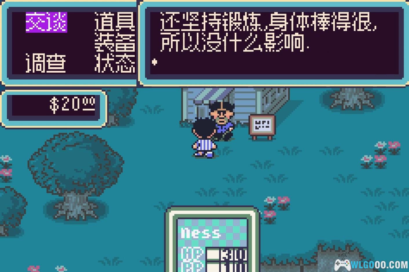 进入城镇后可见周围的人群与建筑。首先进入图书馆(必经之处),与柜台后的女士对话,借阅城镇地图(按 X 键查看)。出门后若需导航可查看地图。继续前行前,先向西再向北,穿过图书馆后的树林,到达隐藏的俱乐部小屋,与里面的孩子对话可免费获得棒球帽,太棒了!离开后前往汉堡店(参考地图),检查汉堡店旁的垃圾桶可找到汉堡。也可顺路访问附近的药店,在店内 ATM 机取钱,先购买发球机球棒。