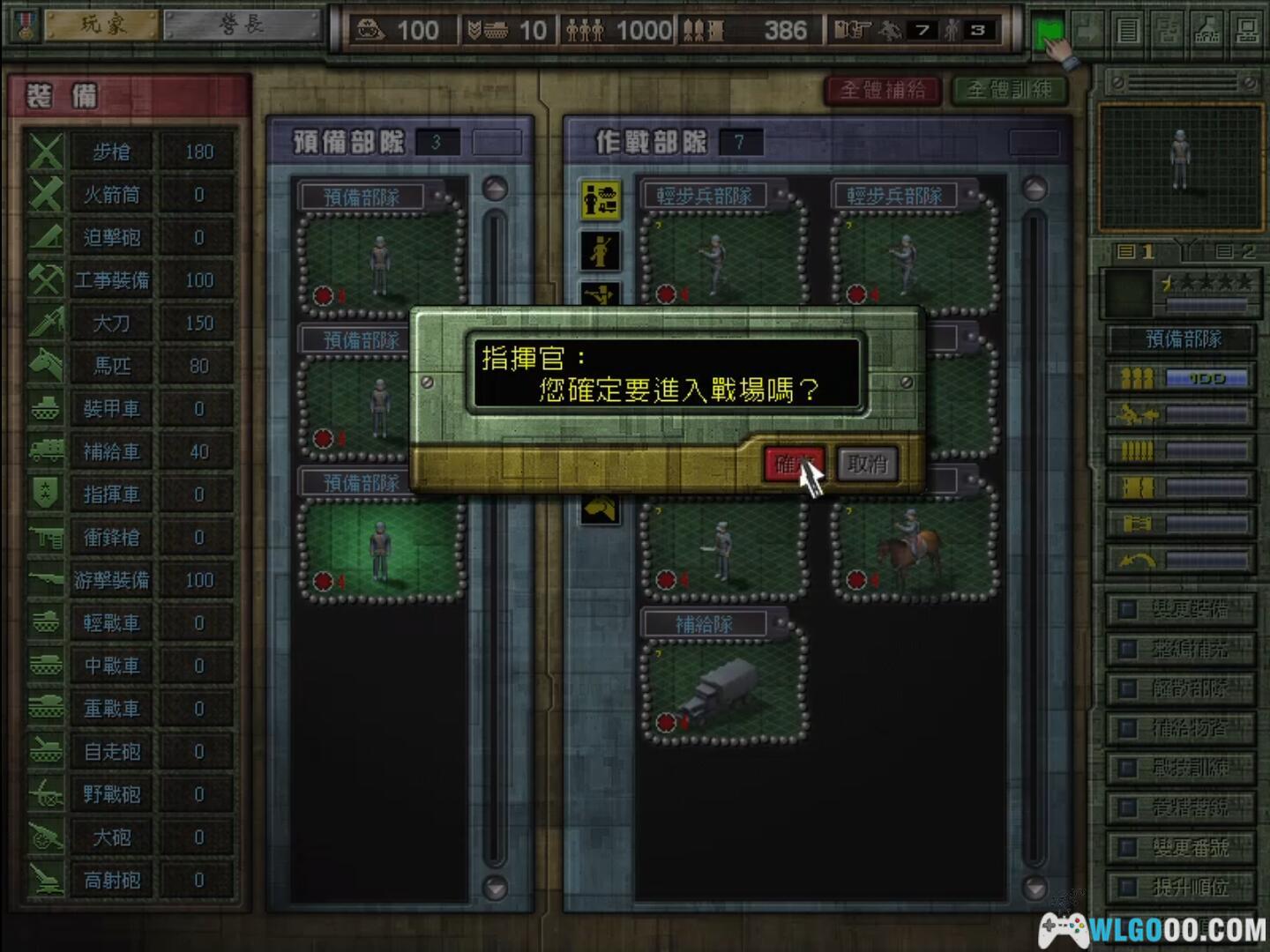 八年抗战游戏密技开启模式:在战场模式中,点选任何一部队,然后执行‘原地休息’的指令。在休息