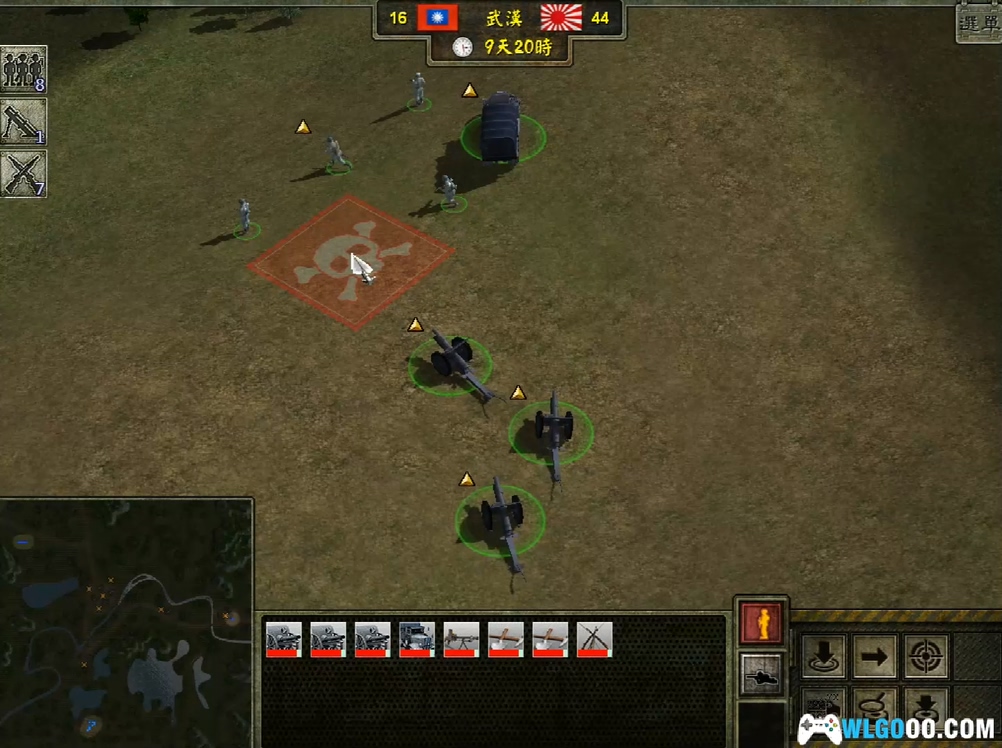 国军孱弱的部队自然不是日军机械化坦克集群的对手。当然玩家也可利用地形来消耗日军的力量。譬如九江南部据点,可以将日军诱如口袋里面给与伤害