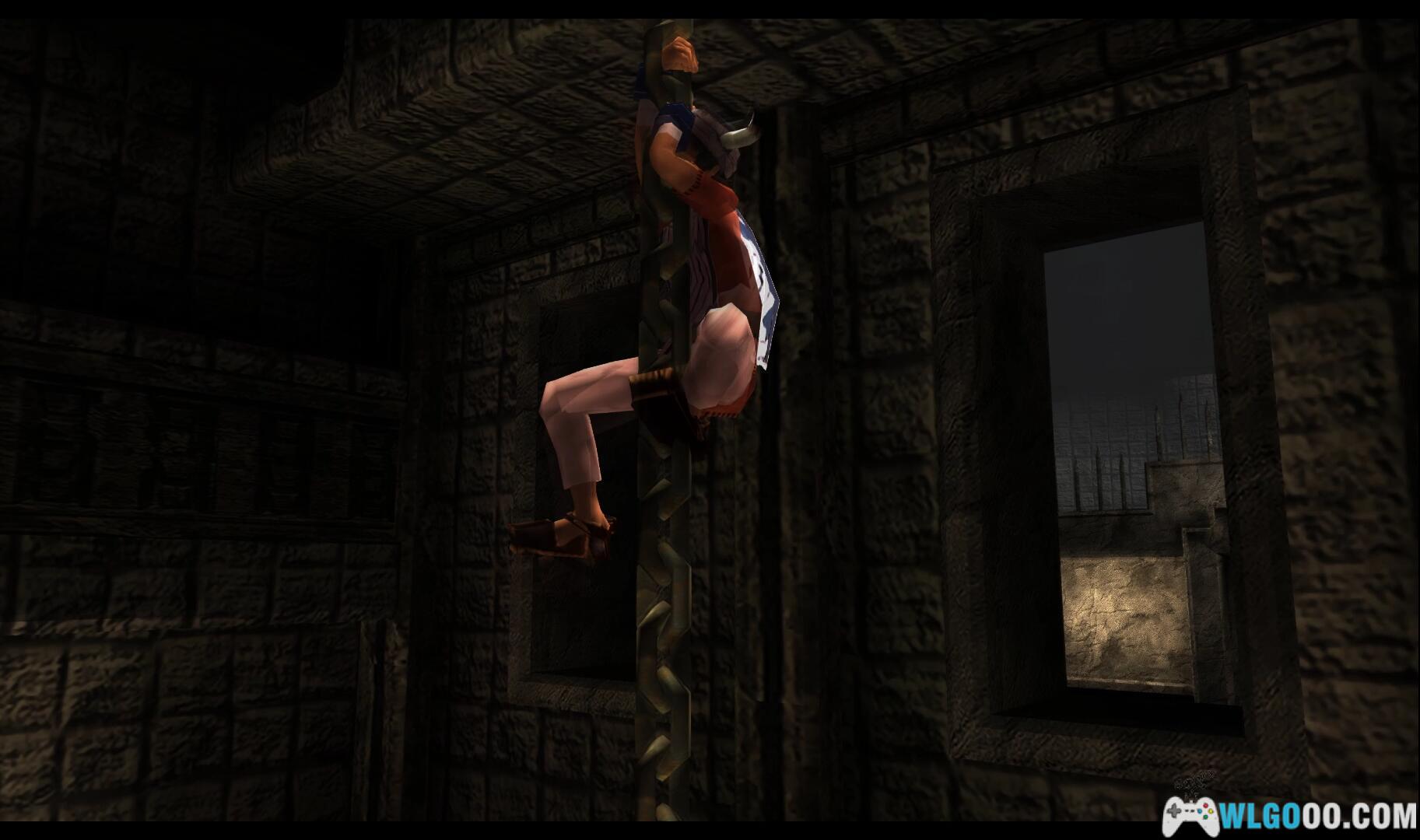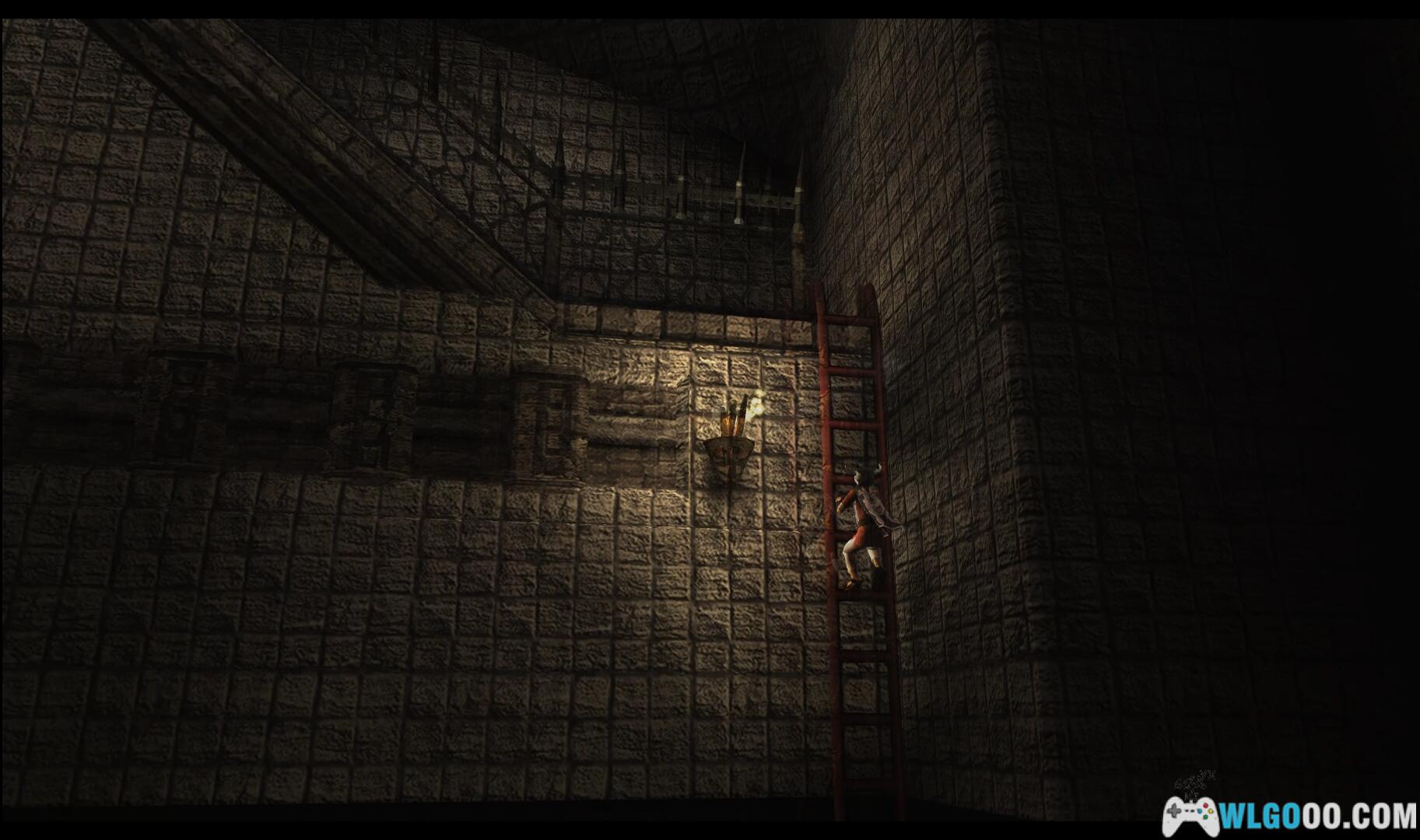 进入楼下的那扇门,来到一个房间,爬上前方的高台,顺着上面的锁链,跳到对面有亮光的窗口上。走进去,来到一个小厅,先爬上封印之门正对的左侧的梯子,走到尽头处抓住锁链向上爬,在中途的过场动画显示一个女孩子被困在笼中。