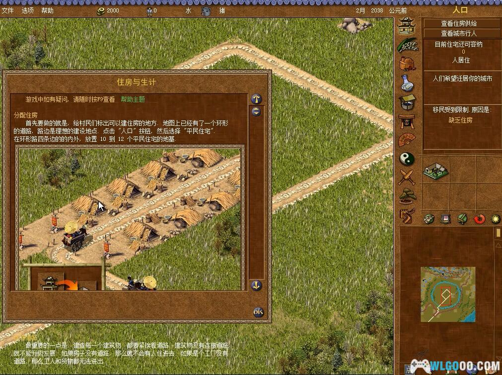 在右边的(人口)按钮,玩者可以建造一般屋宅和富裕之家,当然第一关中并没有富裕之家的选择。