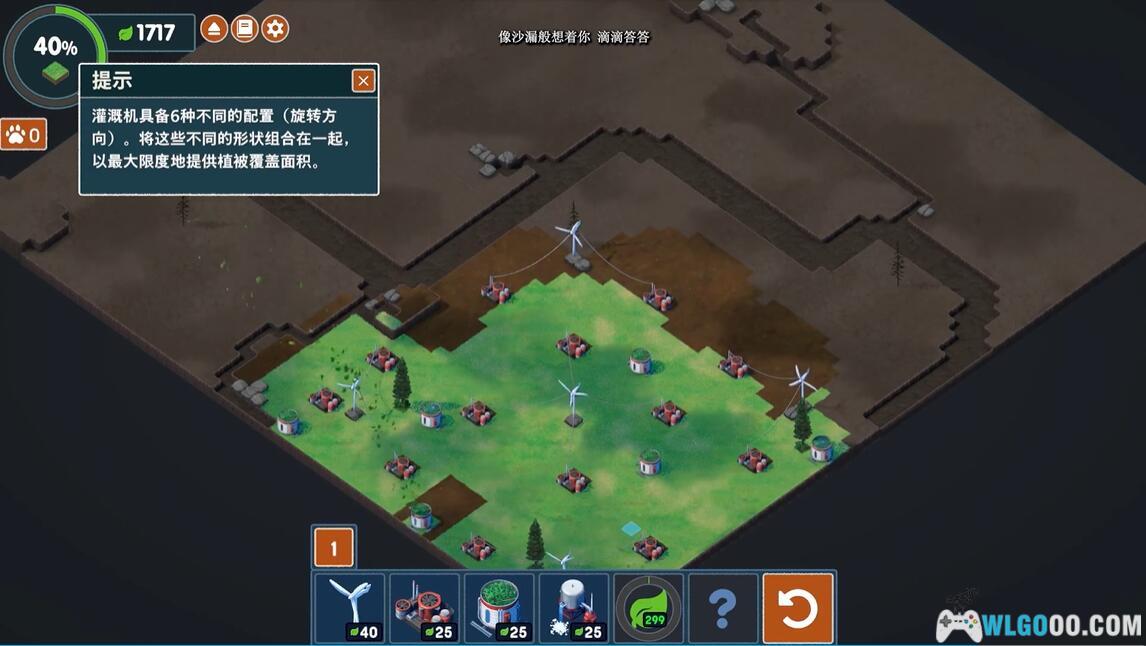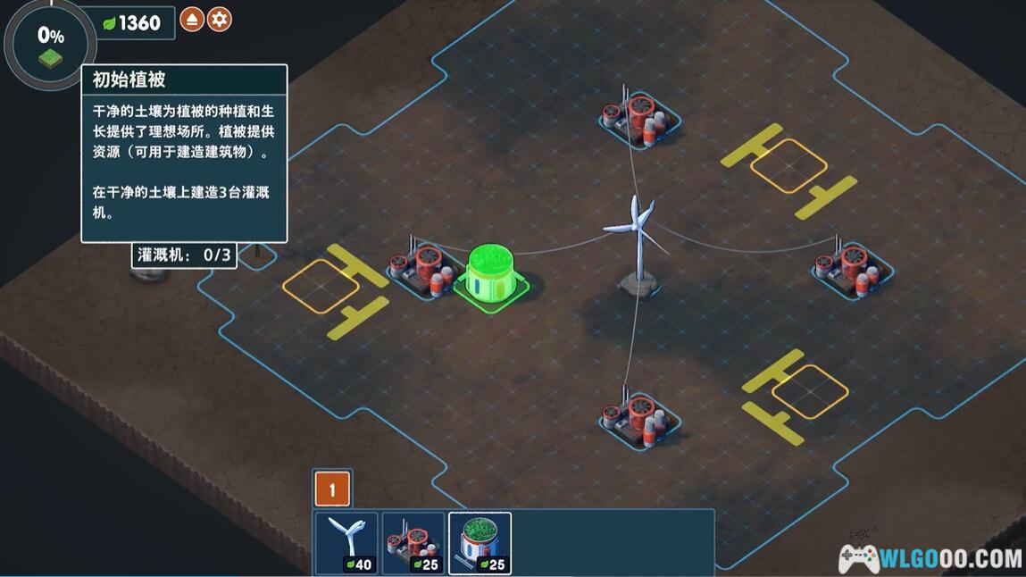 净化荒地以创造沃土。必须先完成这一过程,物种才能生长。为了达到最大效力,建造清毒机时,按照“以最少的清毒机覆盖尽可能大的区域”的思路去建造。
