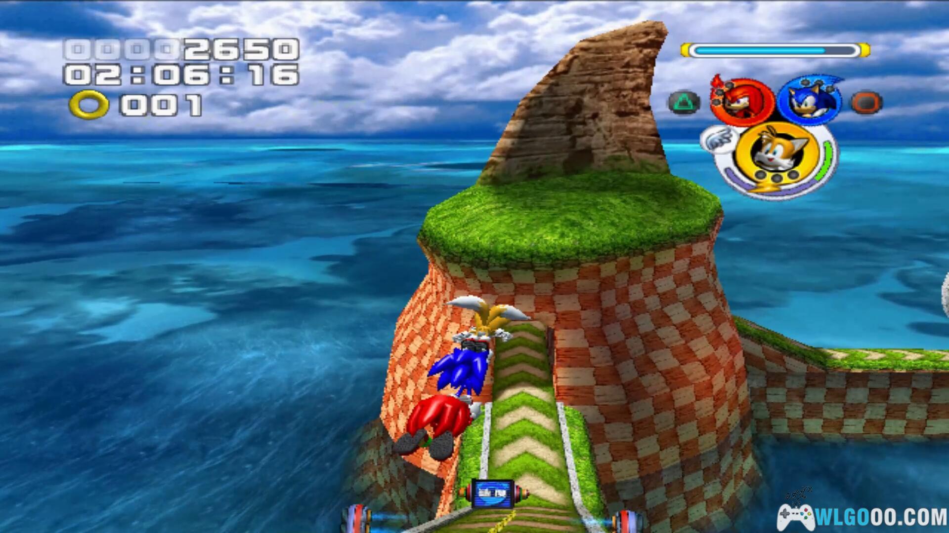 你从海岸线奔跑开始,在一段速度赛跑结束后到达力量门,使Omega成为团队领队。击败路径尽头的敌人,并通过飞行门跳到弹簧上,然后进入速度门。通过助推器并进入环形轨道序列。在尽头,使用光速冲刺(Light Dash)绕过角落的环形路径并击败敌人。使用弹簧弹跳并击败飞行敌人,它守护着一个弹簧,利用它到达上层。有两个方块挡住了去路,使用Omega粉碎它们,你会看到特殊关卡钥匙。拿到它并使用Shadow在速度信号处加速下坡。一个环形轨道将你带到检查点。