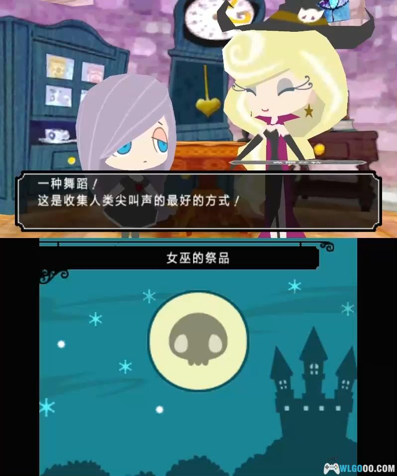 · 在城堡末尾引入摩擦操作。当你在3D屏幕上看到烟雾出现时,开始用触控笔摩擦触摸屏。一个代表触控笔的扫帚将出现,然后扫除烟雾,揭示下面的角色。如果你足够快地清除烟雾,你将看到Sean或Skelly出现,并且会冒出八个尖叫,他们将开始与Gabrielle和她的舞伴一起跳舞。然而,如果你清理烟雾的速度太慢,你将看到一个黑色蝙蝠,并且只会冒出四个尖叫,蝙蝠将开始飞走。清理烟雾的速度不会影响你获得的尖叫数量。