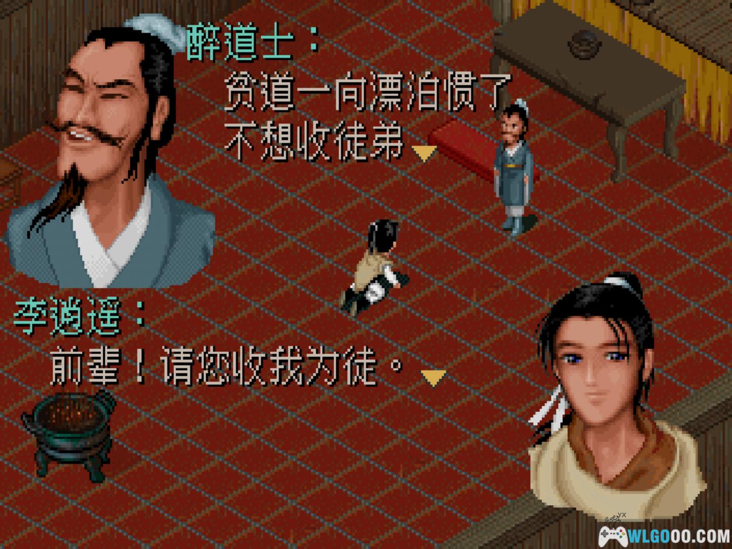 [劇情]出房招待苗族客人,收了500文錢小費。下樓到大廳,李大娘要李逍遙趕走門口的醉漢。與醉道士交談,他卻要李逍遙給他酒喝。