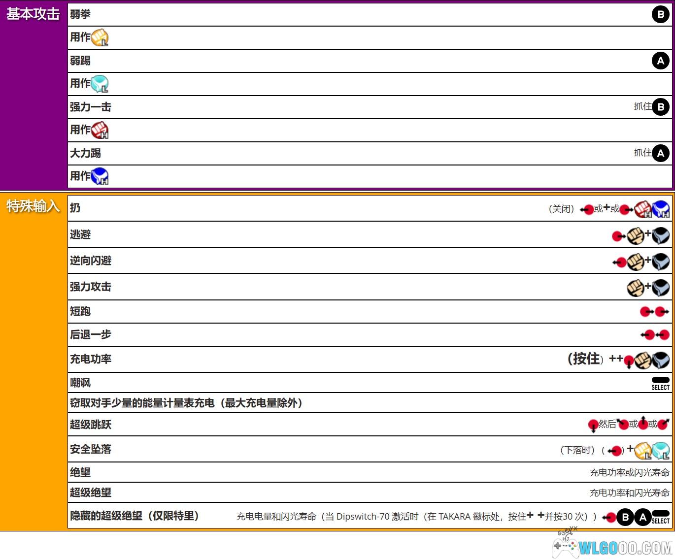GUARD CANCEL紧急回避(后): (在POWER MAX状态下)防御中按←+B+A