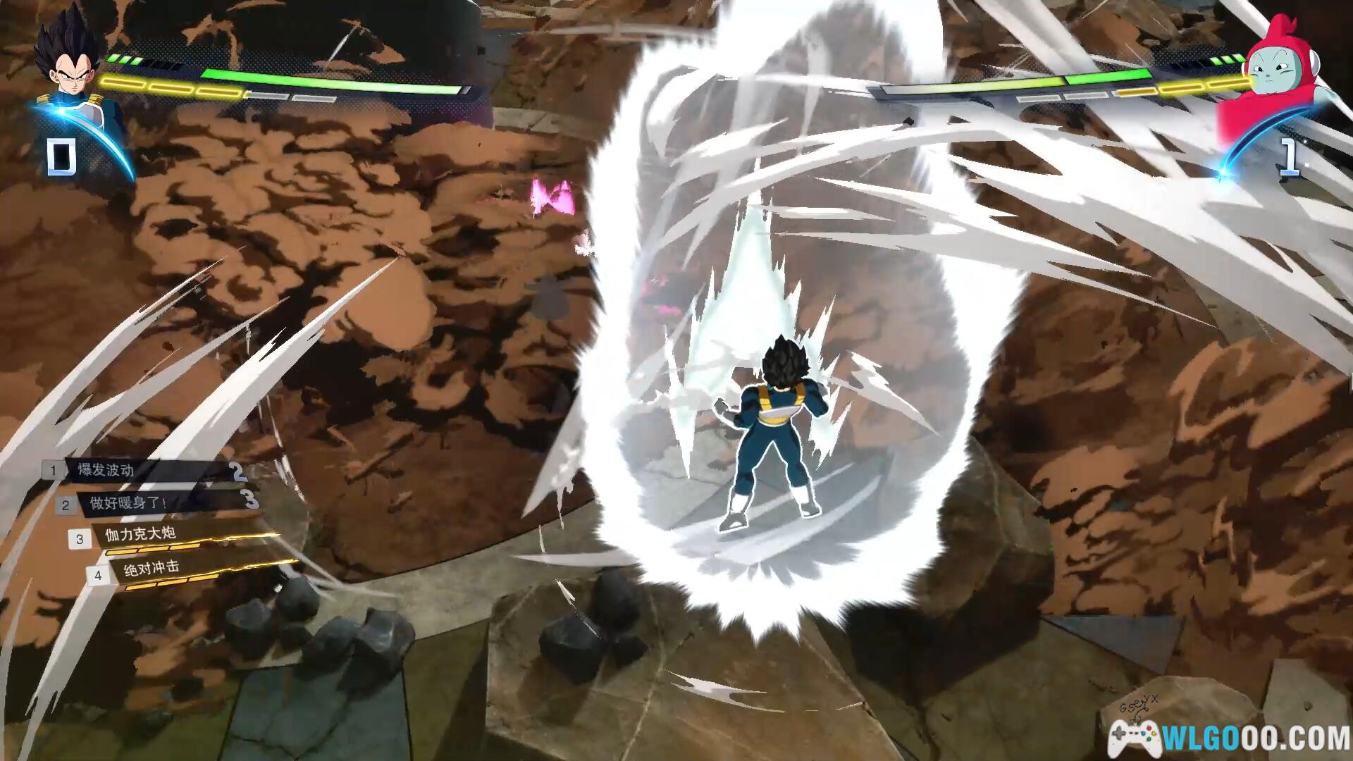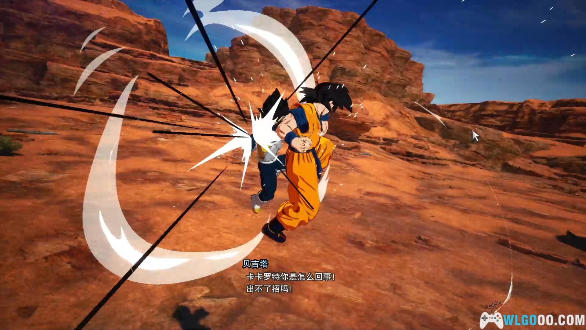 第一章开头就是孙悟空的哥哥拉蒂茨来到了地球,对悟空说,悟空是被送来毁灭地球的赛亚人,然后他提议孙悟空一起入伙。悟空表示死也不会加入,随后进入第一场正式的战斗。战斗难度不高,主要是为了让我们熟悉一下刚才的教学操作。普通的气功波用E键可以打回去,技能都可以用E键防御,就是会扣少量的血。