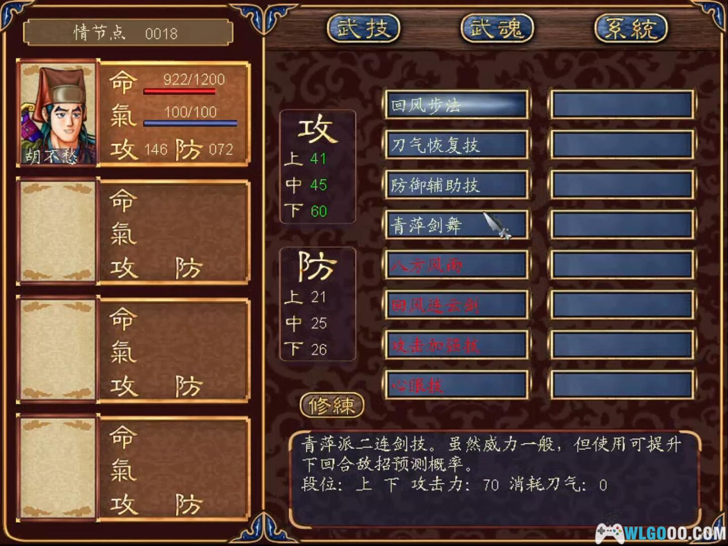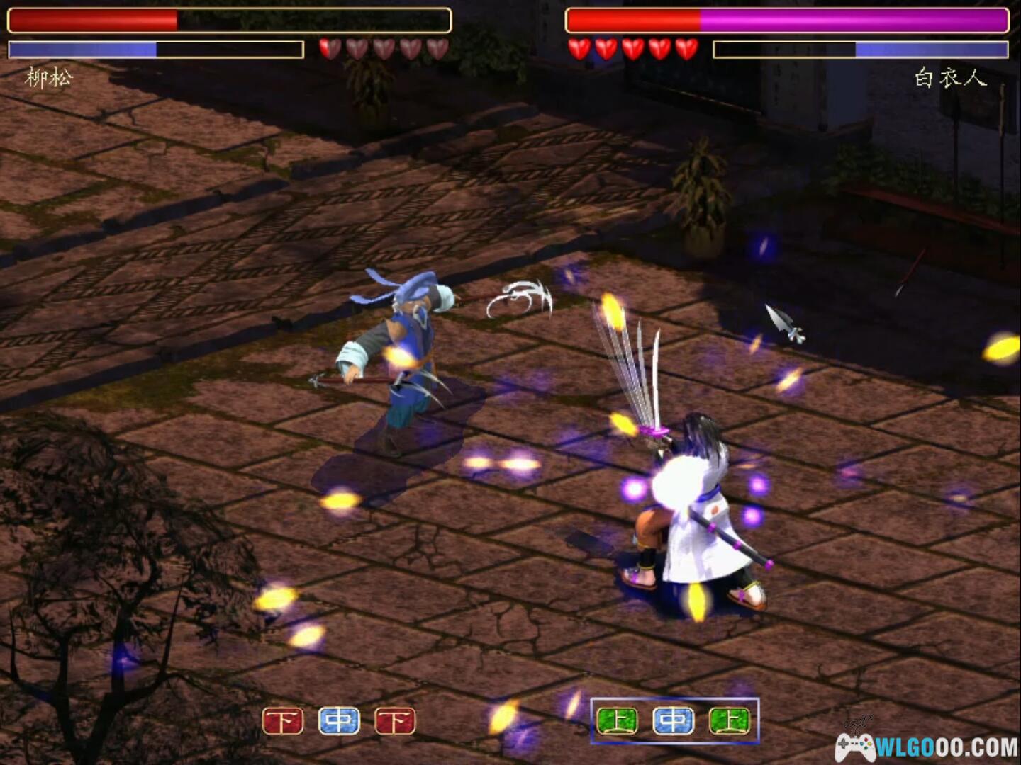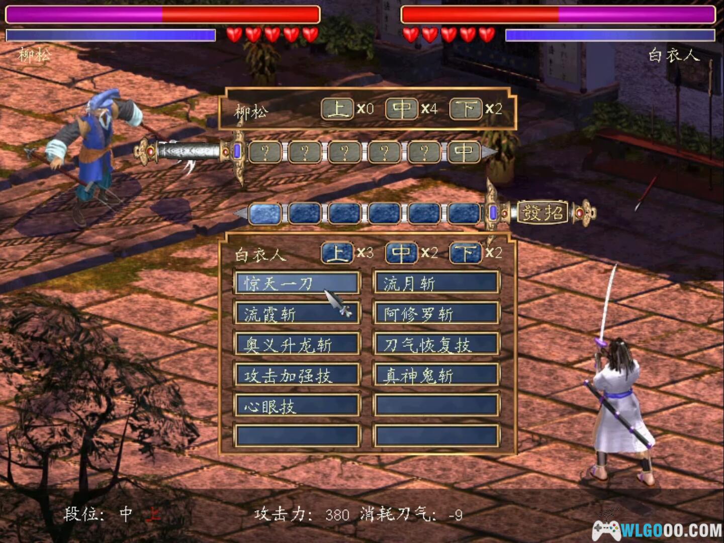另外每回合的战斗共有六次指令可下,注意点击敌人,看他的发招绝技图和计算,推测他如何发“上”、“中”、“下”三招。