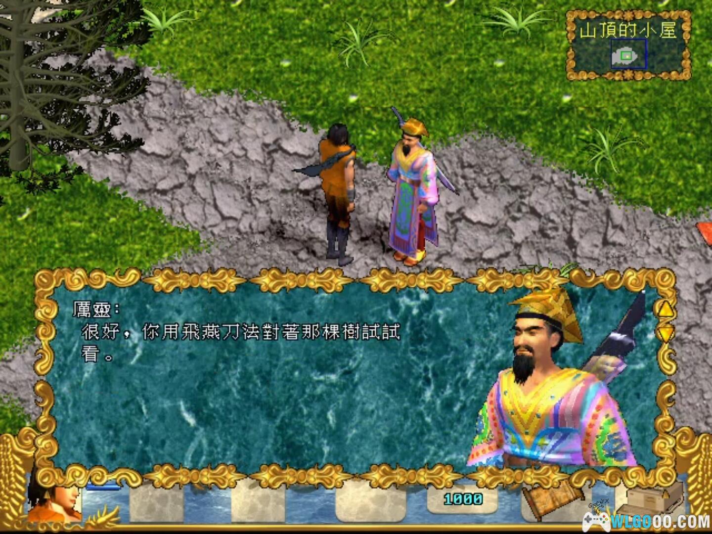 历灵舅舅要考你武功,叫你用两招刀法把树和石头打烂,你就熟悉一下快捷键的使用吧,按G就是直接攻击。