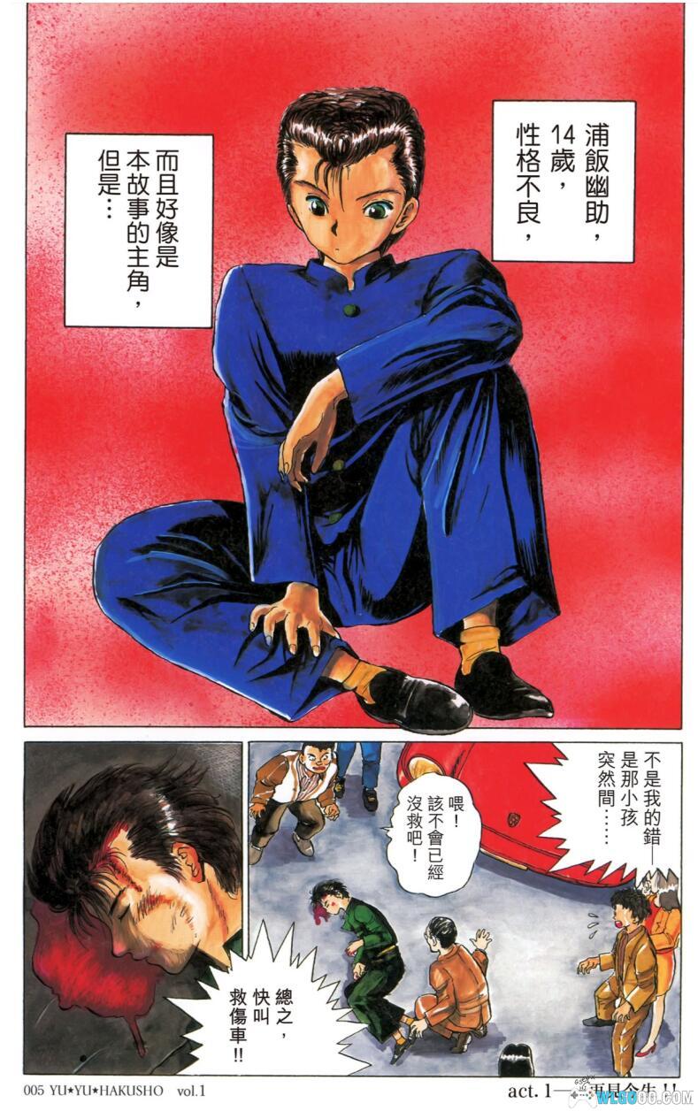 一个十四岁的不良少年,浦饭幽助为了救一名小孩而被汽车撞死了,由于灵界并没有预计到他的死亡,并没有他的容身之所,所以他得到了一个重生的机会。经过了灵界的考验,幽助终于重回自己的身体,并成为灵界侦探。
