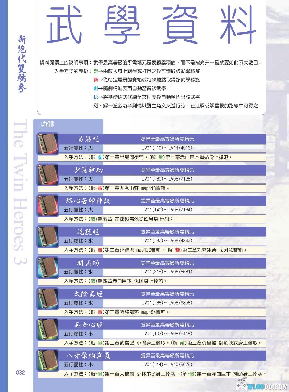 新绝代双骄3 修练后的详细数据以及它们的取得位置