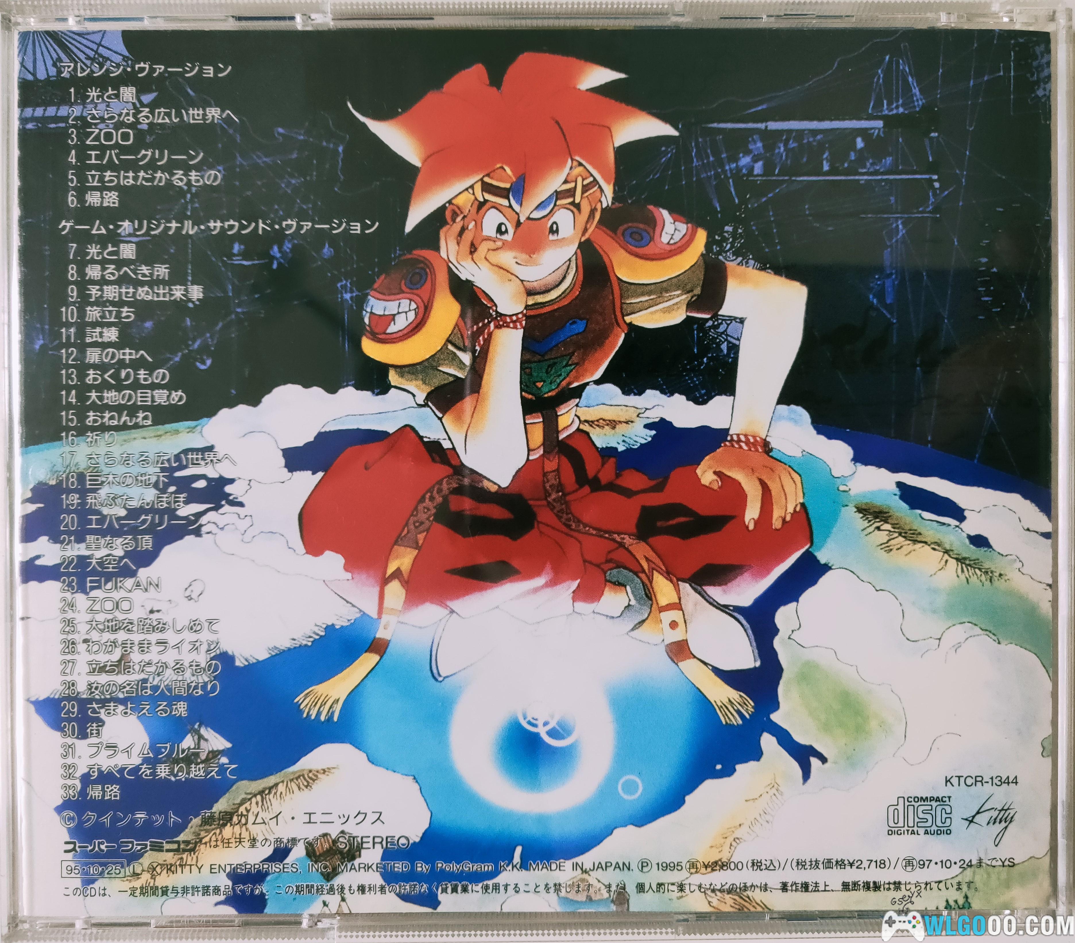 本张OST发售于1995年10月25日,共2CD,33首曲目,发售价格是2800日元,整体游戏的音乐非常契合游戏,水晶小村的静谧宛转、大地图的蓬勃大气、楼兰城的神秘诡异、最终结局的感人哀伤都体现得淋漓尽致,非常值得购入的一张游戏原声,现在日淘的价格也水涨船高,大约在20000至30000日元了。