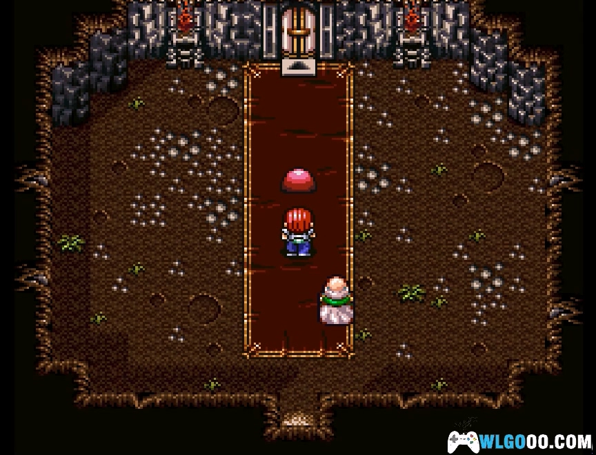 - 在村庄左下方与一位老爷爷交谈,他会教主角洞窟探险的基础,类似新手教学。出村时,老爷爷会告知主角到南方秘术洞窟找他,他会在那里等主角。