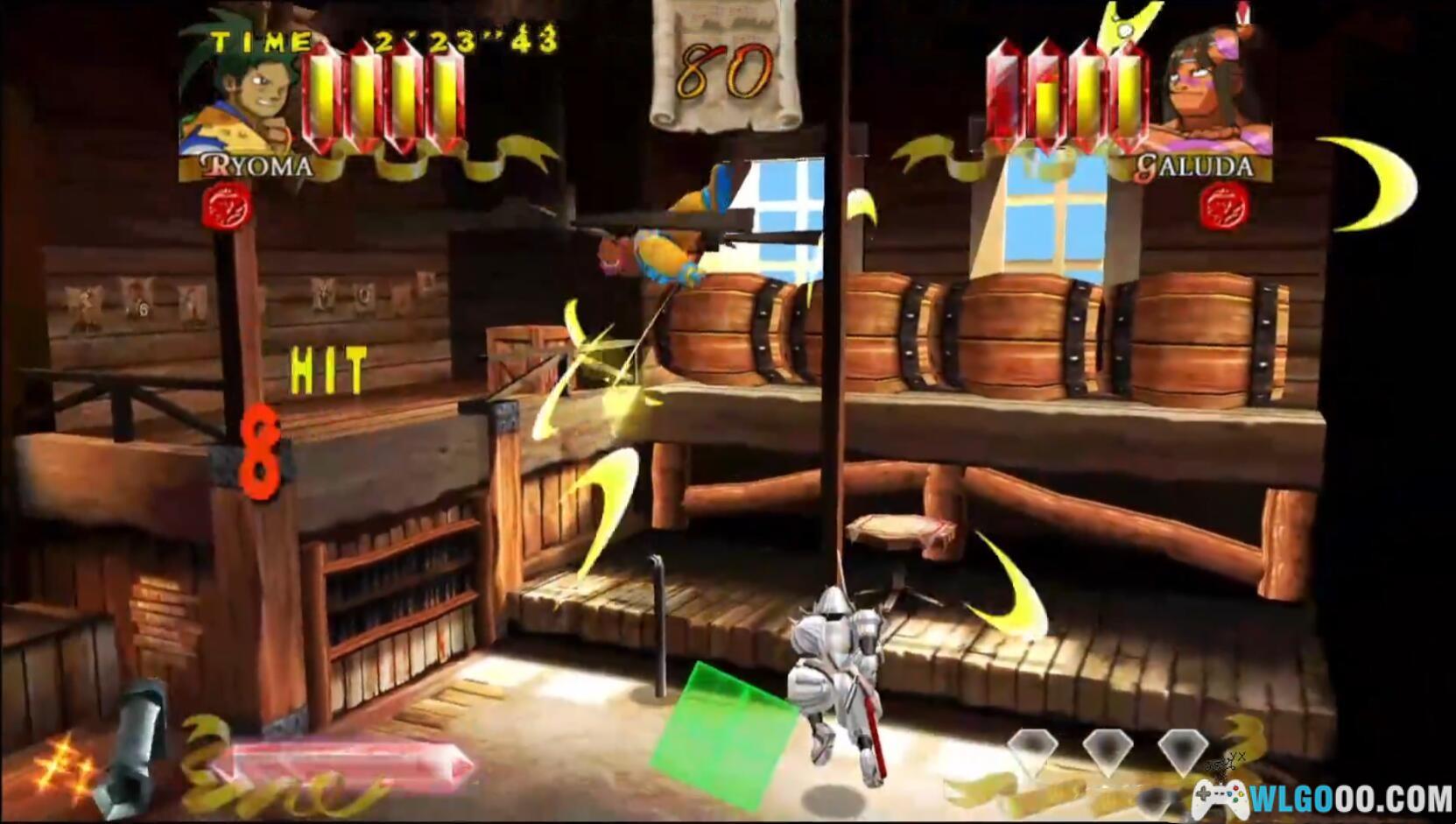 游戏是看谁拿到三颗宝石快速的变身,变身后的杀伤力非常的高,最后没倒下的两位过关,最后挑战BOSS是个大只的怪物,难度有点高所以修改了,修改内容如下:
