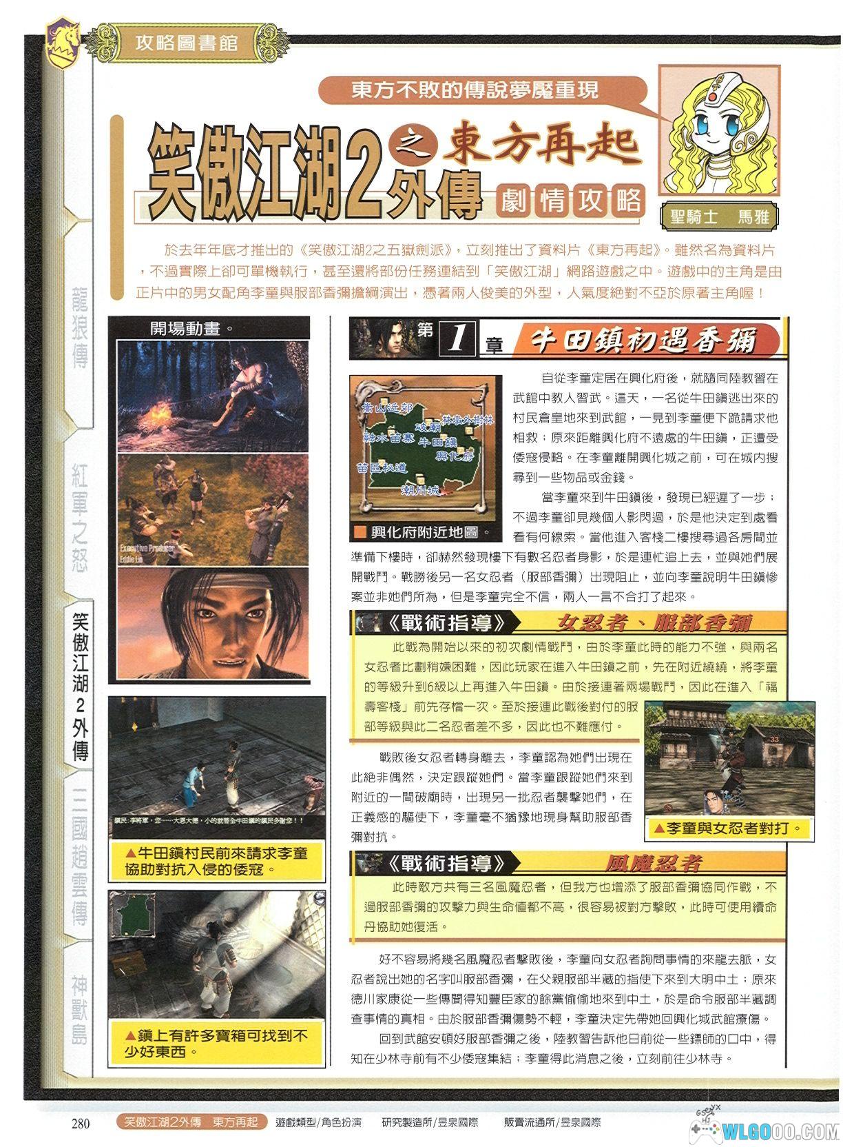 一进入牛田镇就发现有忍者,但马上消失。四处找找可用之物。最后来到客栈,从楼下向楼上搜寻,存盘先。在准备下楼时发现忍者,没说的,准备战斗吧。如果你没死,女主角那个日本MM出现了。可惜一言不和,说打就打。第一场结束后,不管怎么选都要再打,这就叫不打不相识。二次战斗结束后,服部强行离去。李童尾随服部来到了破庙。