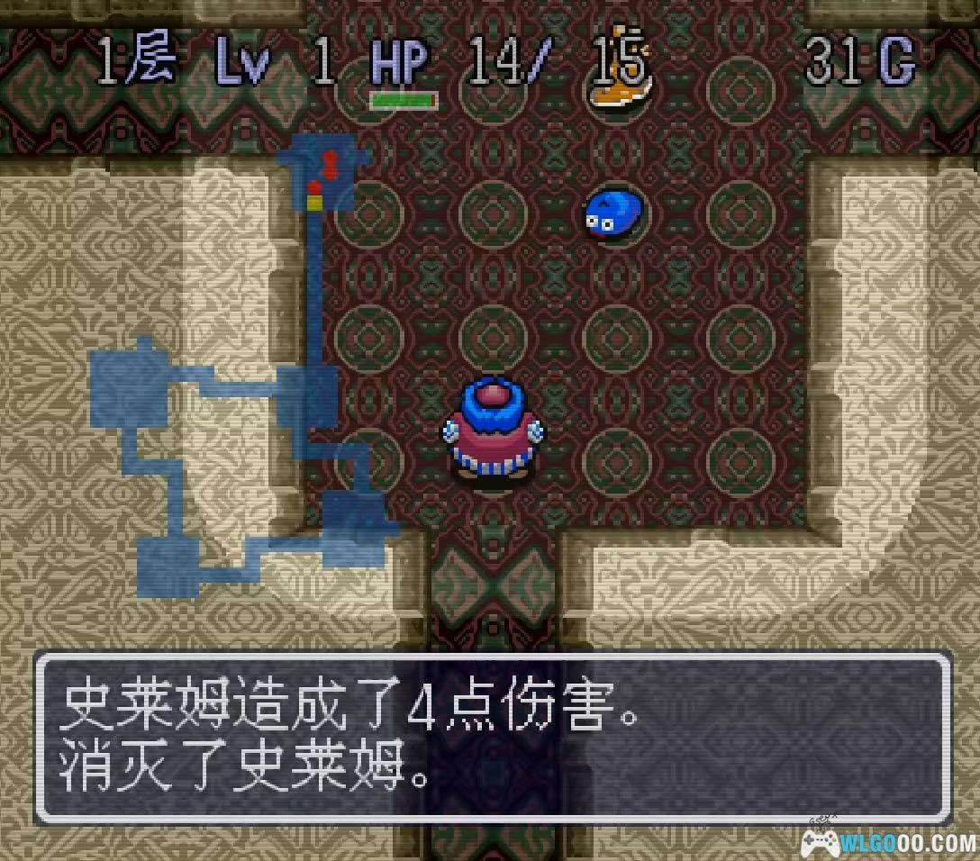 - 第一层没什么需要担心的,如果运气好能捡到一个武器或盾牌的话会轻松不少。另外,在迷宫中的武器和盾牌是没有识别的,这时需要使用「识别卷轴」来识别,才会知道具体的名称和作用。