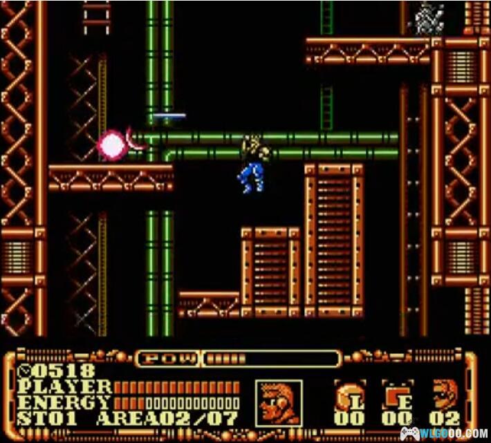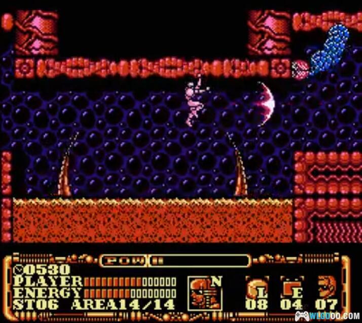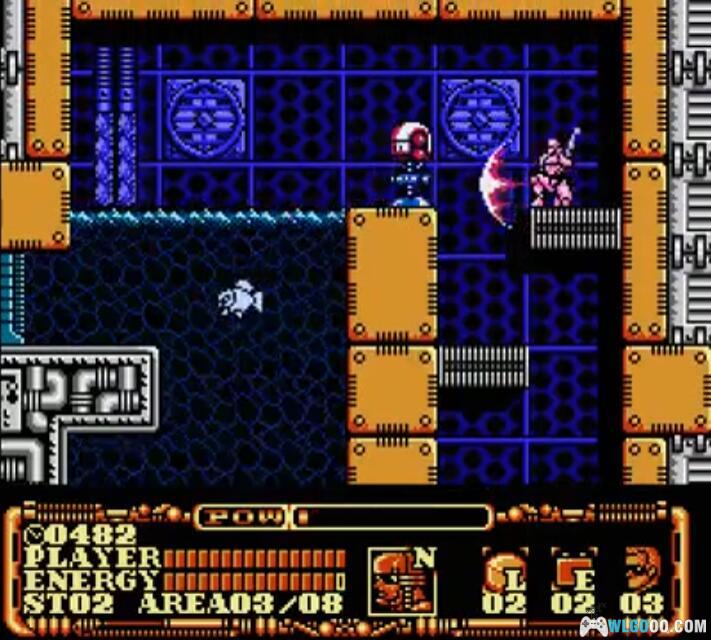 - N 装甲:获得后主角可爬墙,包括天花板,只要主角能够碰到墙壁,朝墙壁一侧用力跳上去即可吸附在墙上,通过方向键在墙壁上移动,按 A 键可从墙上跳下,按 B 键可进行攻击。