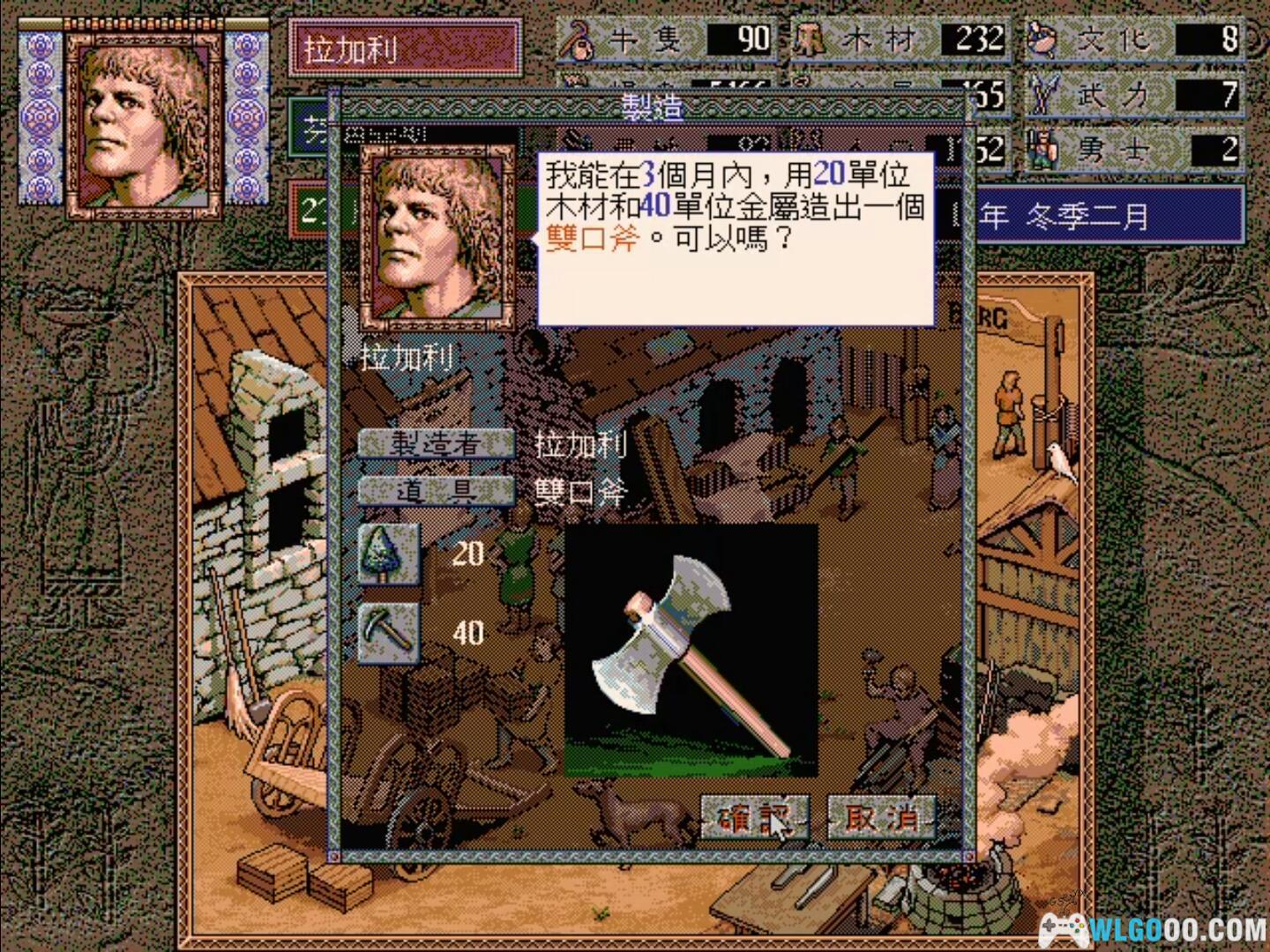 双口斧:武力+10;耗时3月,费20单位木材及40单位金属;