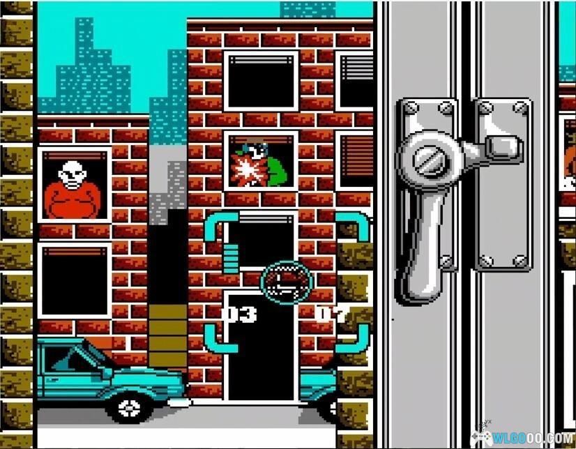 作为一款 1990 年的美式游戏,其画面在当时较为出色,尤其是游戏标题画面中主角站在摩天大楼上,穿着飘逸的风衣,完美再现了当时的电影海报。