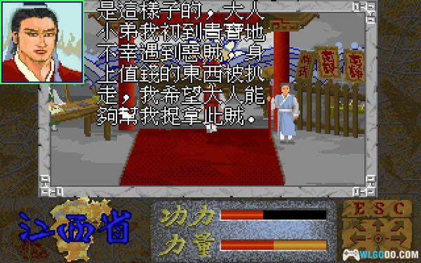3.有了钱到镇里逛一逛,右下角巷里有当舖和赌坊,左下角有衙门和针灸店。涉世未深,竟在黑巷里神不知鬼不觉被扒走绿玉珮,还好找衙门老爷聊天时他发现了,只好顺水人情拜讬他帮你抓坏人(给他一两就可以),去当铺当了鱼肠剑(一定要做,因剧情需要)。找官老爷,就逮到人,拿回被偷的绿玉珮。