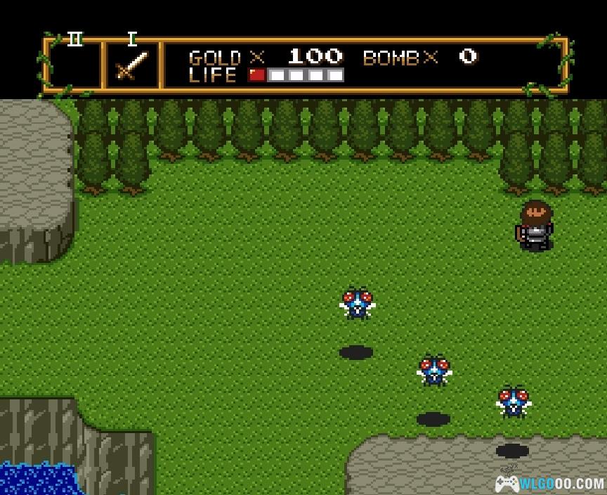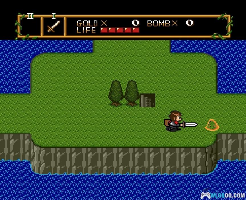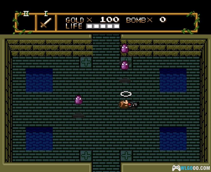 向西走一次,进入洞穴。这个男人会给你炸弹和活力药剂。要使用这些物品中的任何一个,按下运行键并高亮显示你想用的物品。你一次只能装备一个物品。炸弹用于炸毁任何秘密入口、通道之类的。它们也可以用作进攻性武器,但要小心 —— 你一次只能携带八个。活力药剂能完全恢复你的生命值。绿色罐子表示你还可以再用一次,而红色罐子表示你还可以用两次。