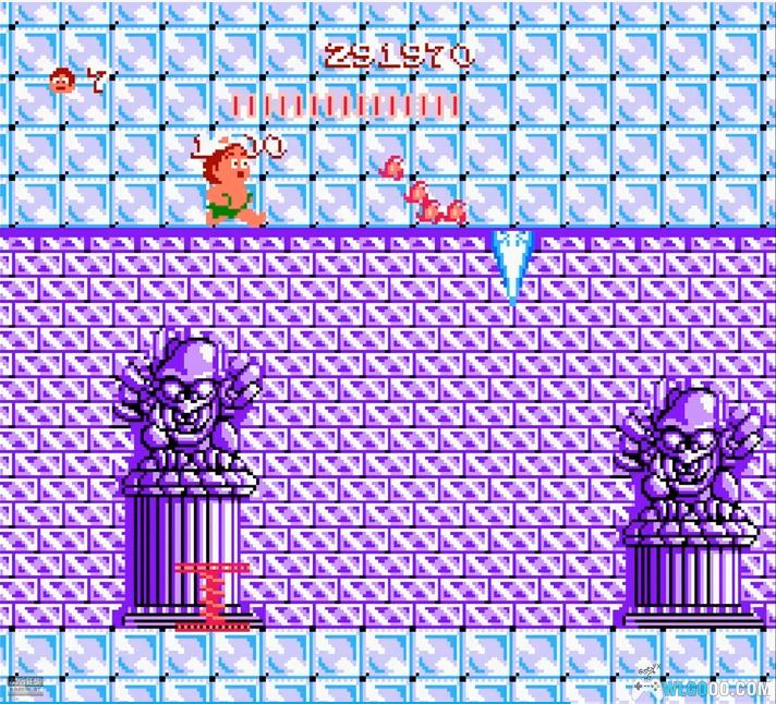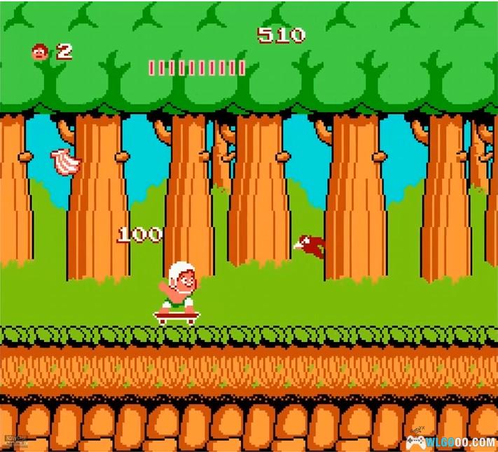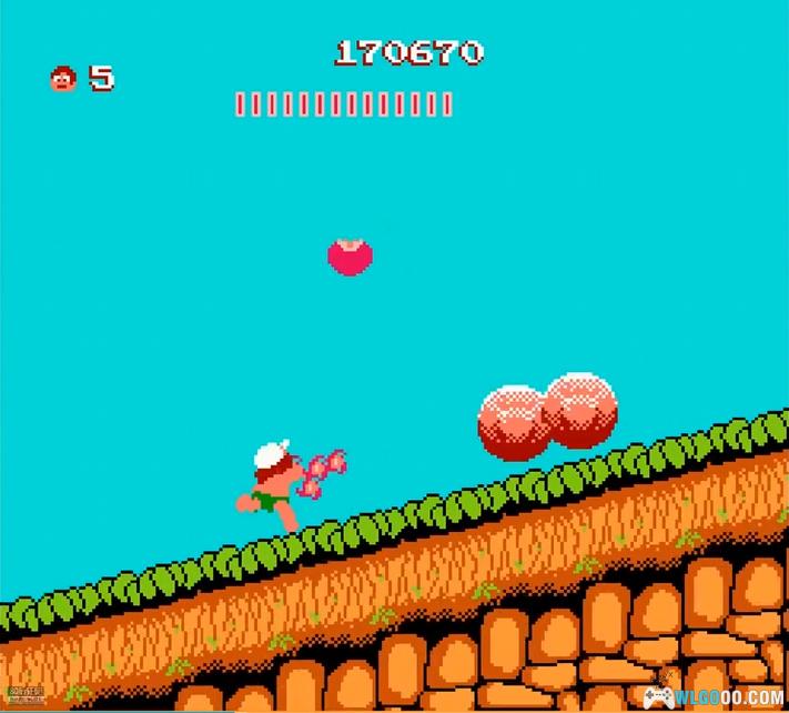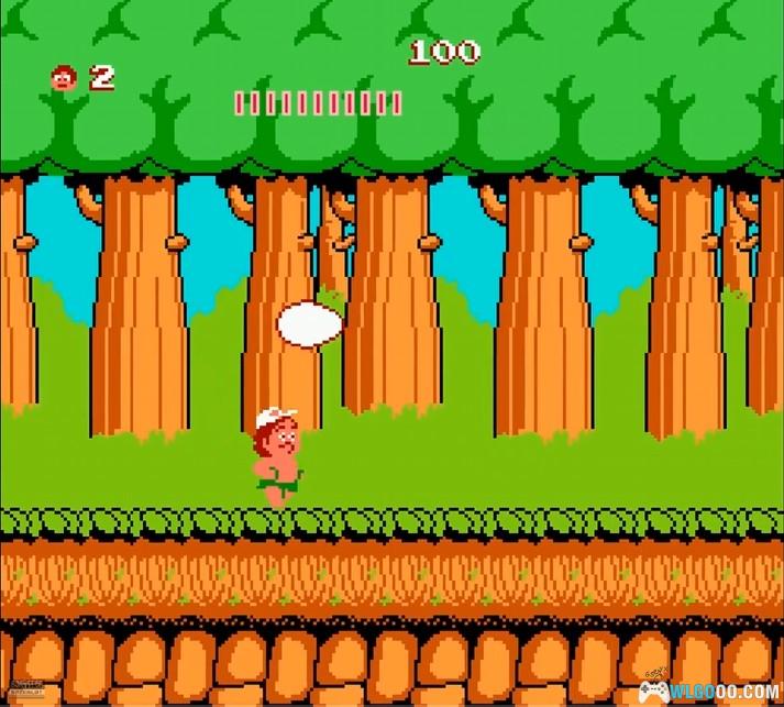 游戏以热带岛屿为背景,玩家操控手持石斧的小野人穿越 8 大场景,在充满陷阱与敌人的环境中展开营救女友蒂娜的冒险。核心玩法包括跳跃躲避尖刺、落石,投掷石斧攻击食人花、蘑菇人、蝙蝠等敌人,收集水果回复体力,利用滑板加速或触发隐藏蛋获取无敌妖精、额外生命等道具。