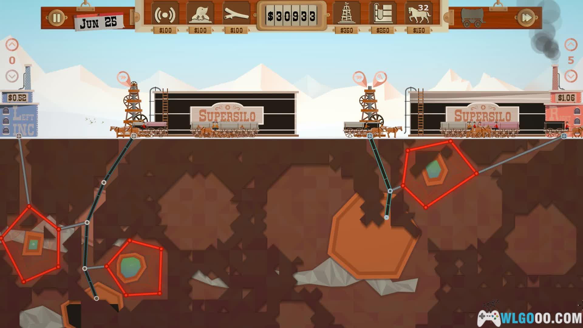 在城镇拍卖中获得土地,并用探矿者、鼹鼠或扫描仪发现石油。创建有效的管网,将石油输送到地面,并购买货车和筒仓进行运输和储存。等待合适的价格出售,或自己使用天然气来提高油价!