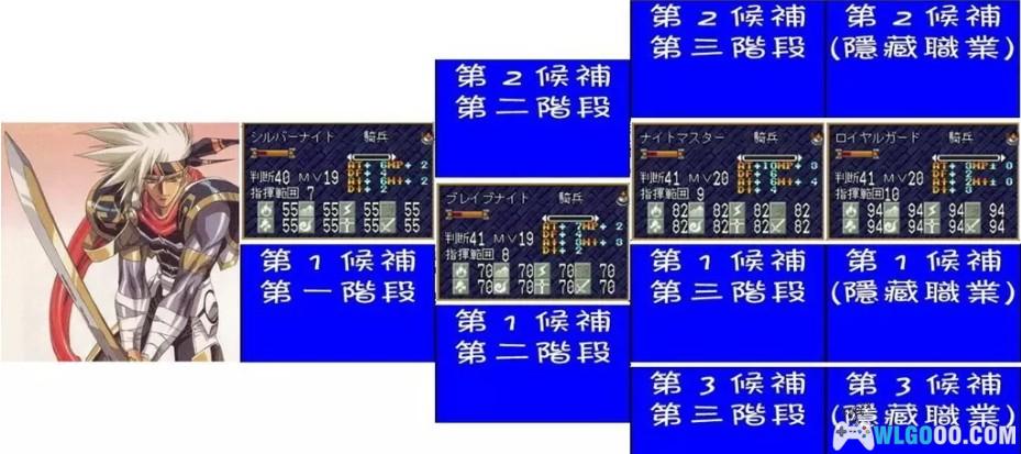 | 1 阶段 | 角斗士 | 鹰骑士 | 魔法师 | 扈从骑士 |