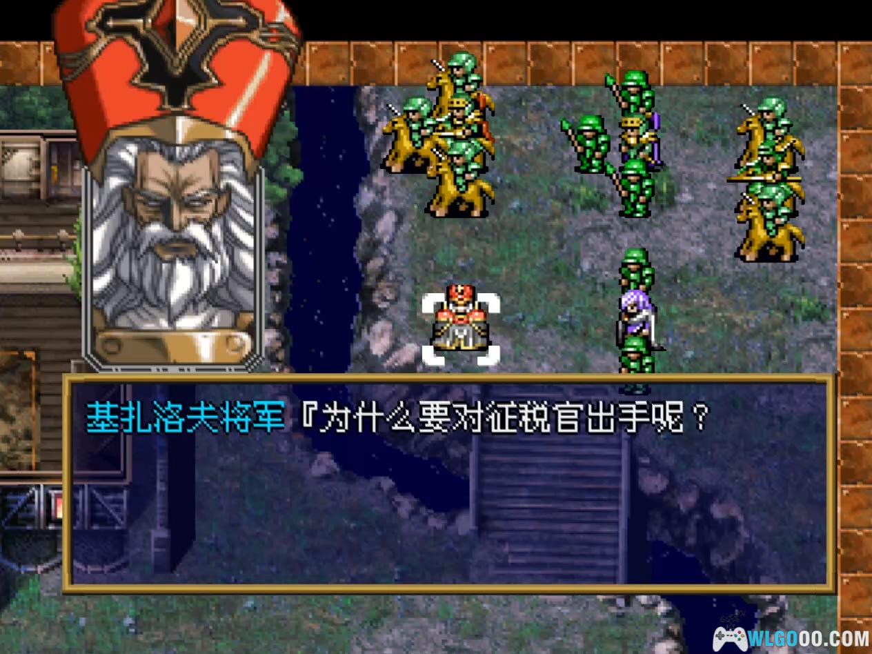 先用主角的骑兵轻松击倒两名征税官后,基扎洛夫带领大批军队赶到,并抢走了贤者水晶,抓走了村长的女儿蕾迦尔。不要和敌人纠缠,让主角和利奇逃到南面村口即可过关。
