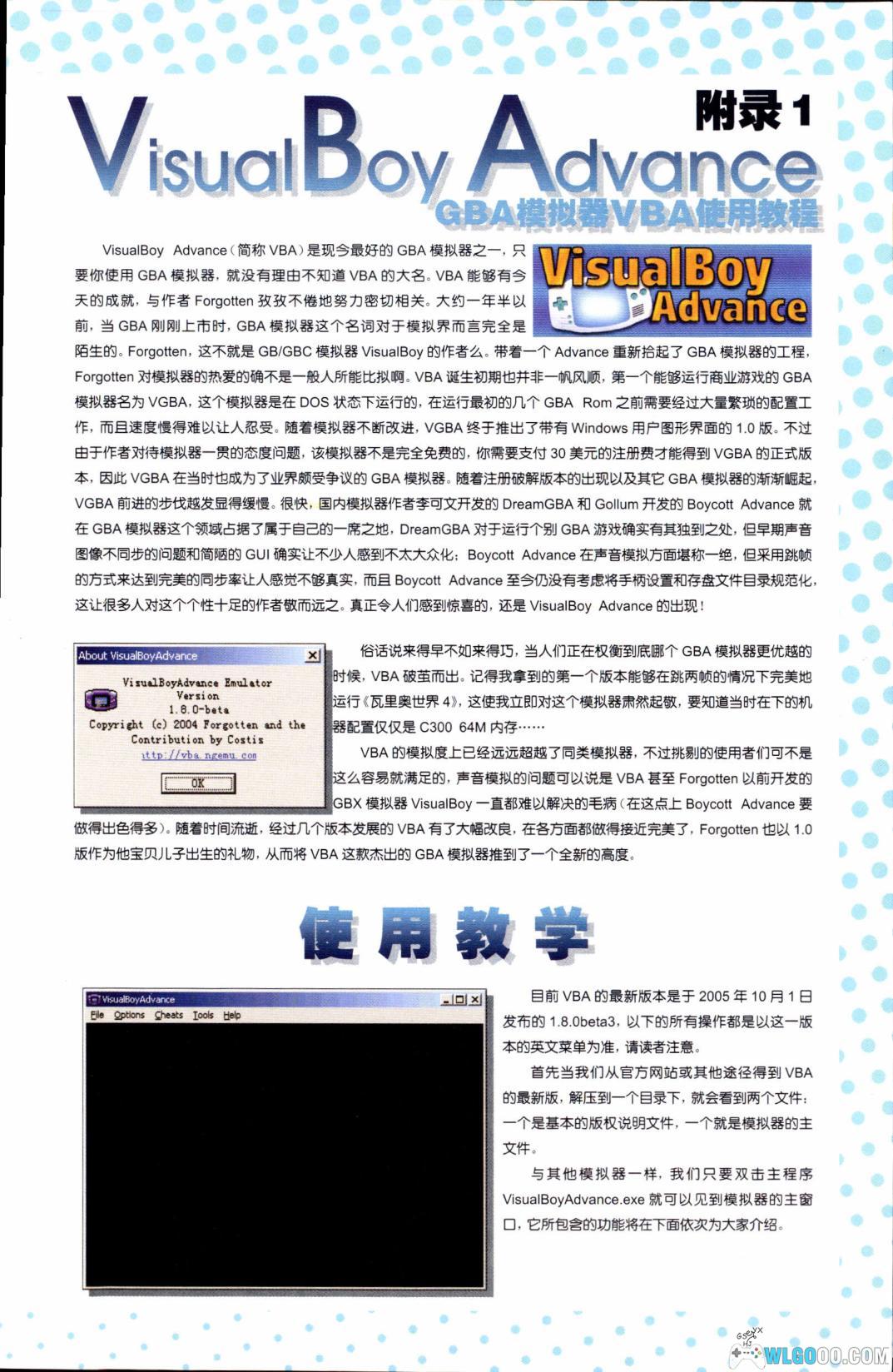 《GBA 游戏图鉴收藏本》是针对 GBA 游戏收藏爱好者的实用指南类读物。这是本以游戏图鉴为主的读本,还有VBA模拟器的使用与设置教学。
