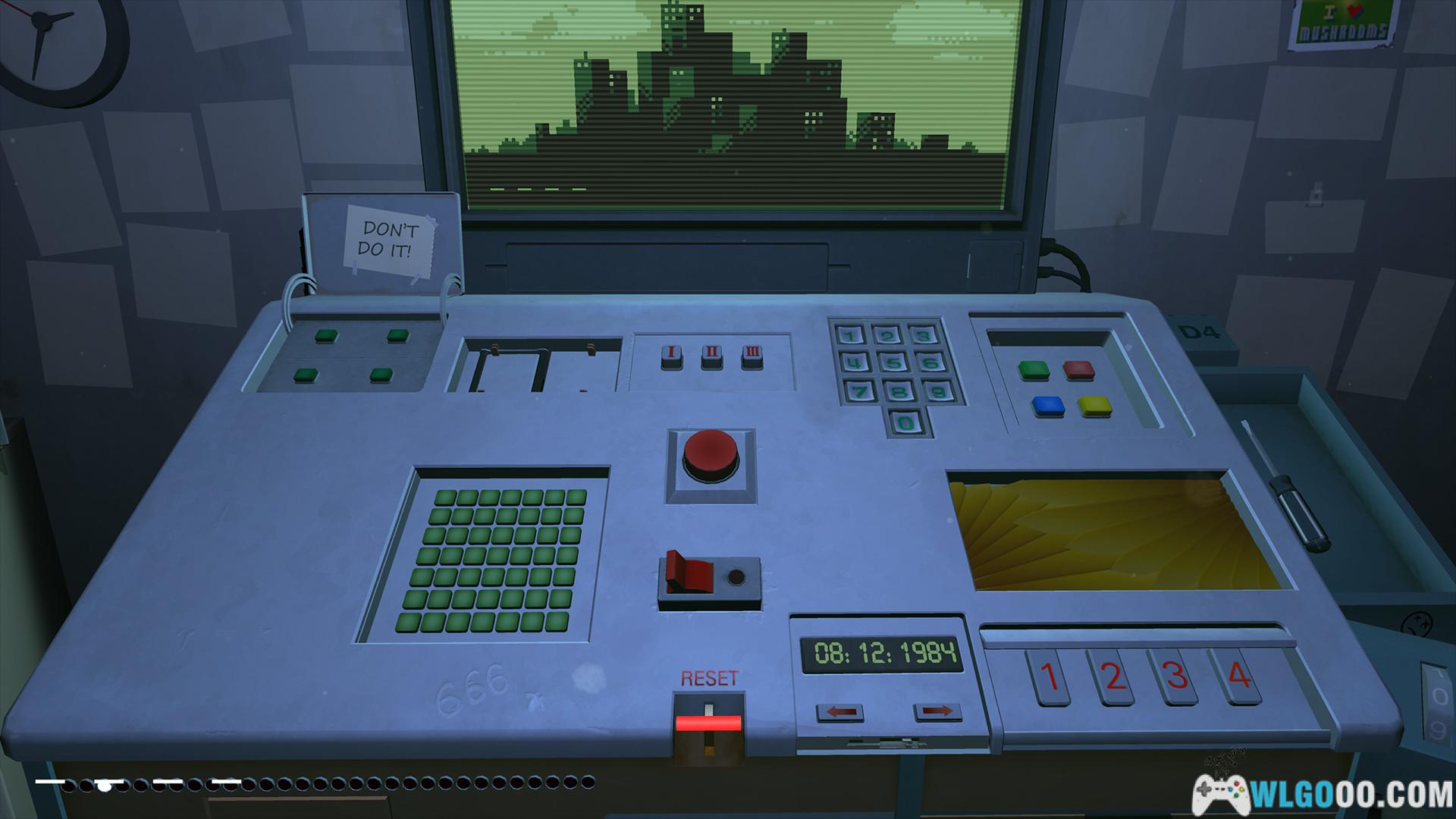 同事上洗手间,你帮他代班,发现自己站在一个神秘的控制台前,屏幕上有一个绿色监视器,显示了一个未知城市的像素化实时图像。同时还显示了一个不祥的红色按钮,上面标有简单的指令:请不要触摸任何东西!