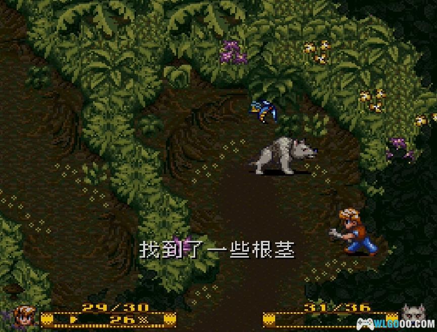 村子探索完后,准备好几块狗饼干,往屏幕的右下角走,然后出去。