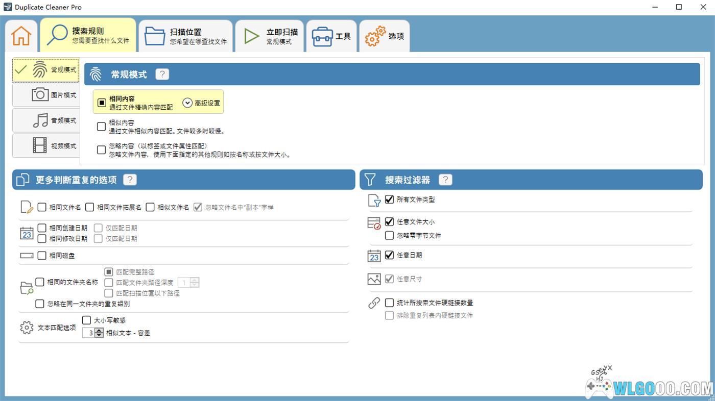 用户可自定义扫描范围和过滤规则,例如指定文件夹、排除系统目录,或按文件大小、修改时间、扩展名等条件进一步过滤结果,甚至支持搜索压缩包(ZIP)内的重复文件。