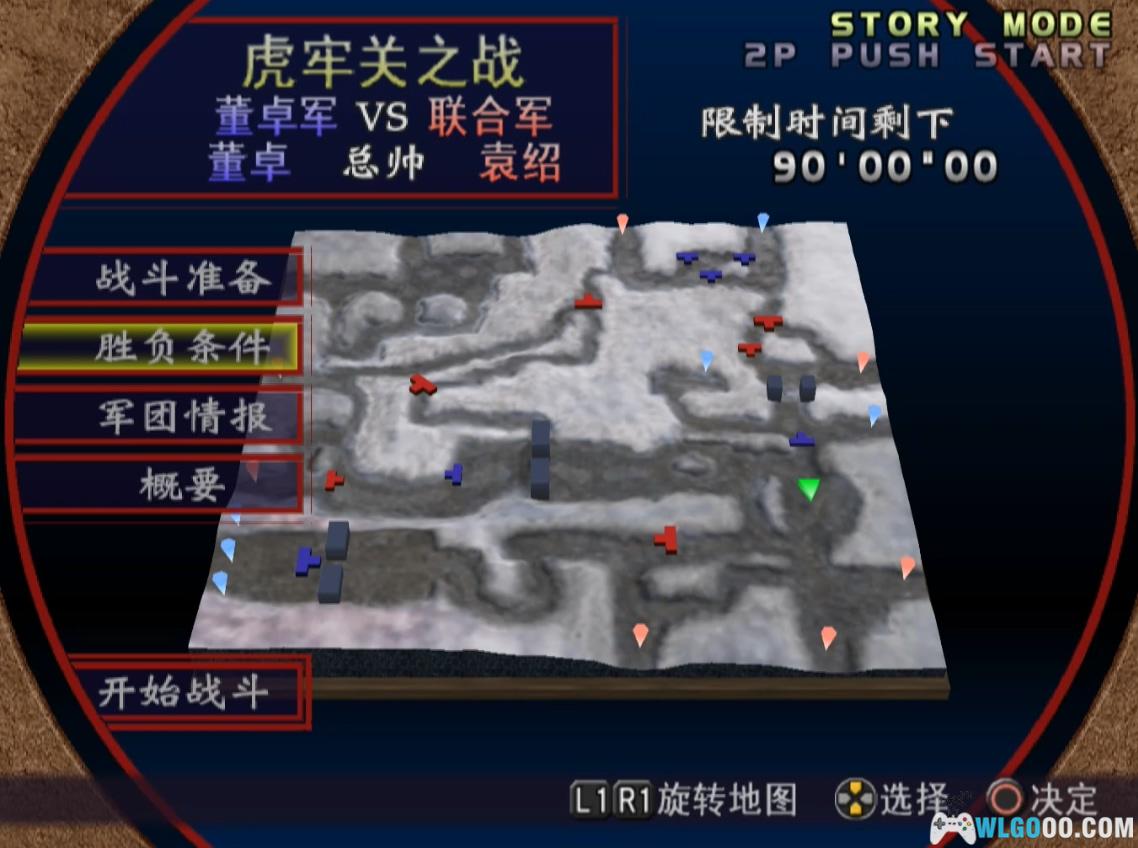 - 初始位置中央,先击破袁术(虎牢门前)。