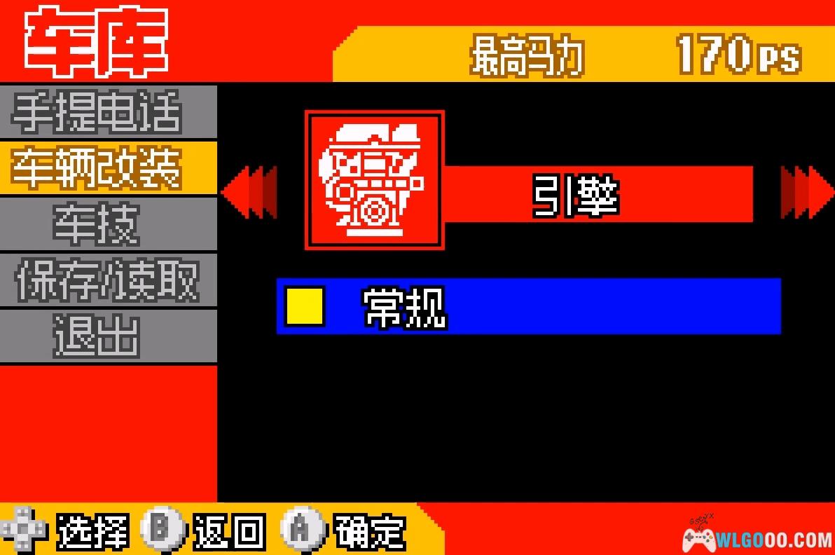 - 自定义改装:查看强化配件的资料、更改装备(装备越好,比赛时的损耗越小)。