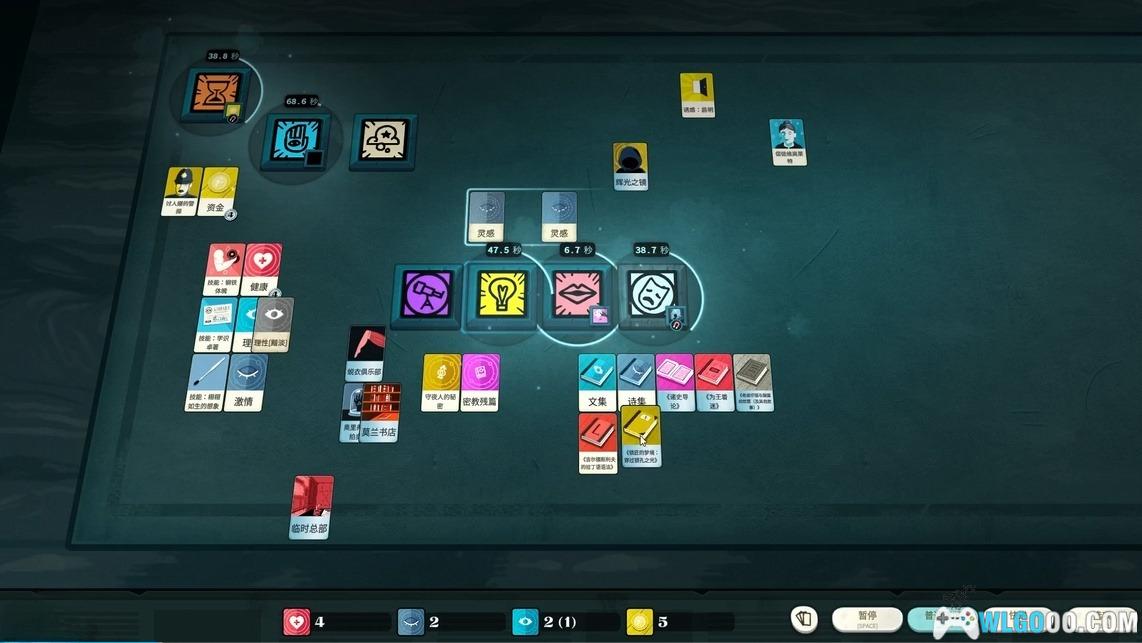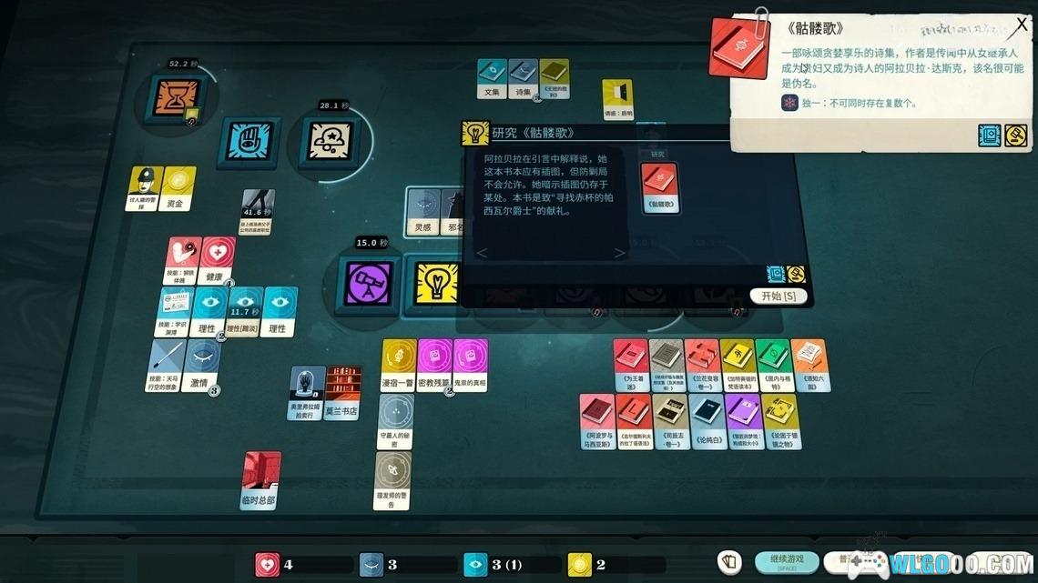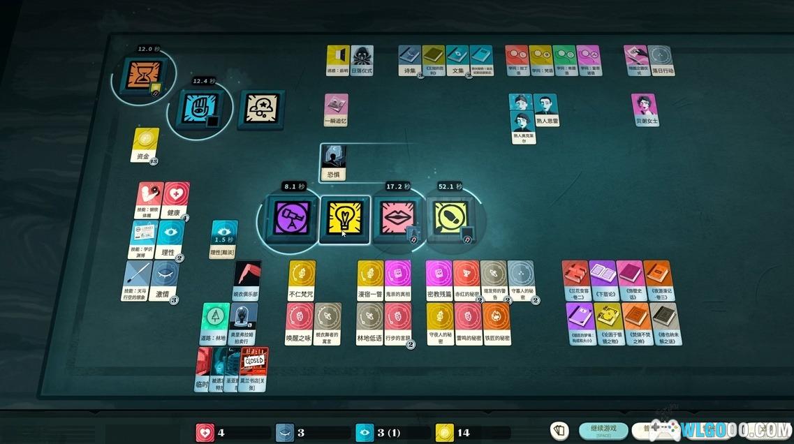 - 通过拖放卡牌到不同“行动槽”来推进游戏,如研究、工作、探索或仪式。