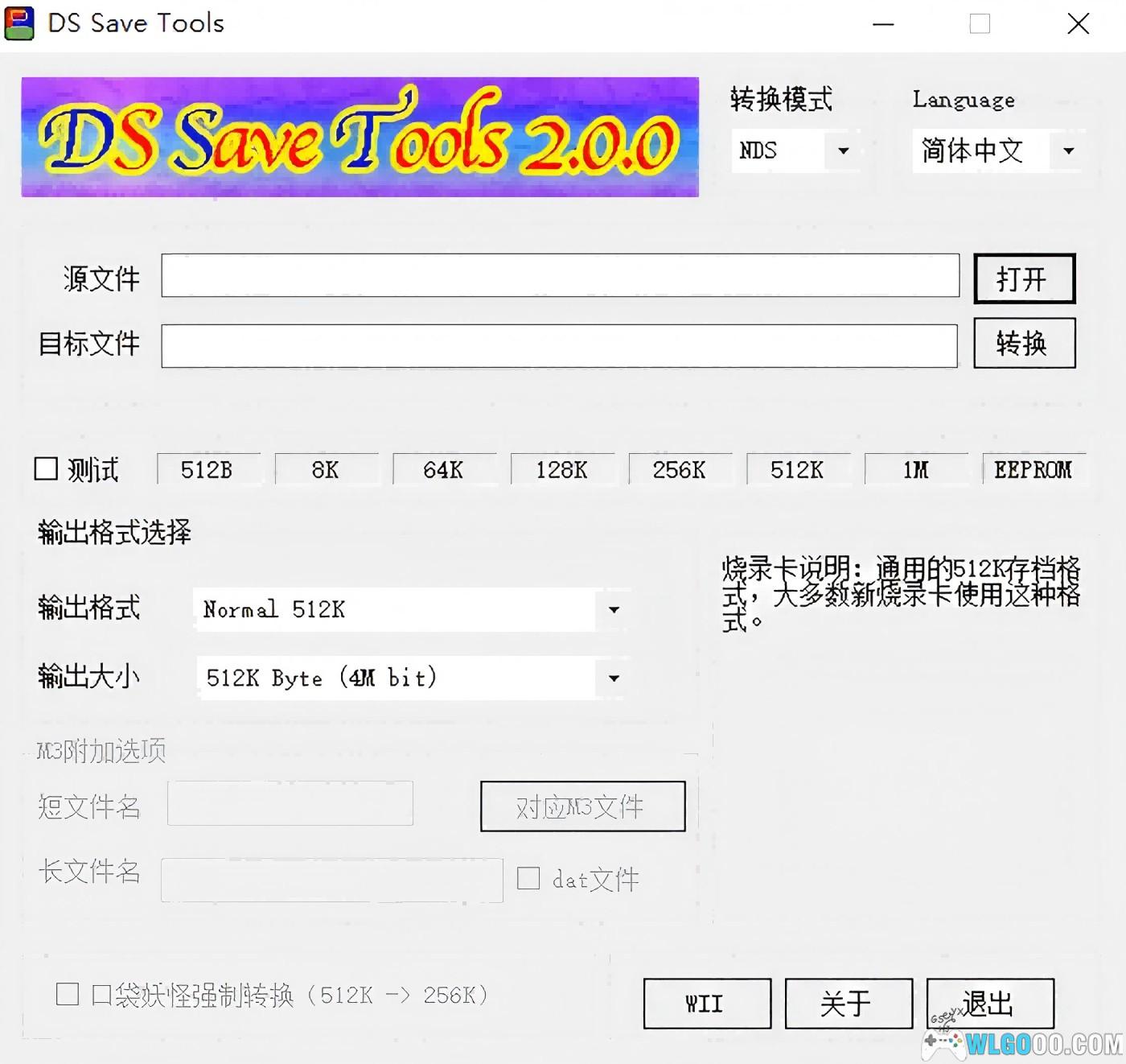 1.在源文件一栏选择需要转换的NDS存档,在目标文件一栏选择输出的文件地址