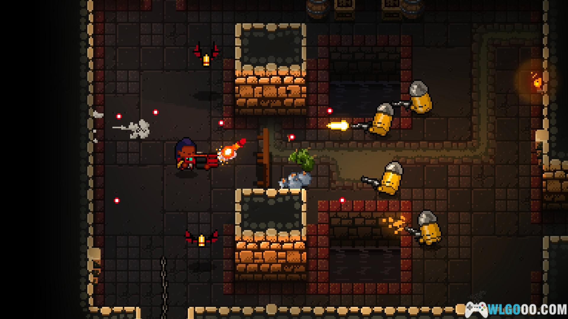 - 战斗系统:作为一款弹幕射击游戏,玩家需要通过射击、翻滚躲闪等操作来与敌人进行战斗。游戏中的敌人种类繁多,它们有着各自独特的攻击方式和行为模式,玩家需要仔细观察并找出应对策略。玩家可以使用各种武器和道具来消灭敌人,还可以利用场景中的要素,如引爆炸药桶、推倒桌子作为掩护等,增加战斗的策略性。