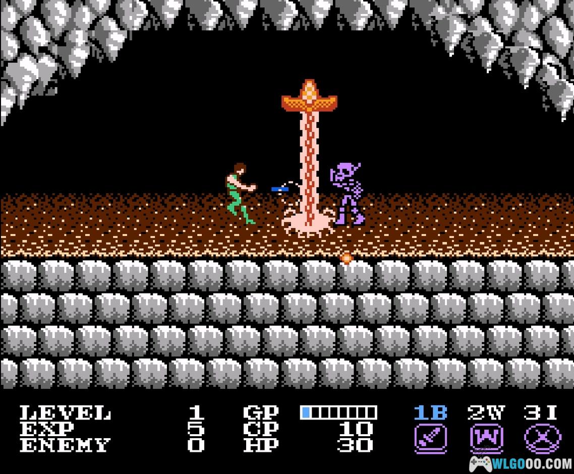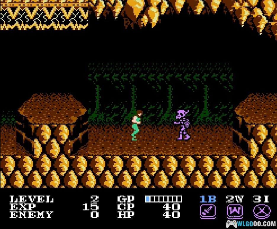 初期的主角异常脆弱,建议先消灭骷髅,多收集【P】能量。穿上盔甲后就安全了,接着在附近练级,LV3 时武器熟练度达到 B 级(需要 100 多 EXP),后续冒险会轻松许多。