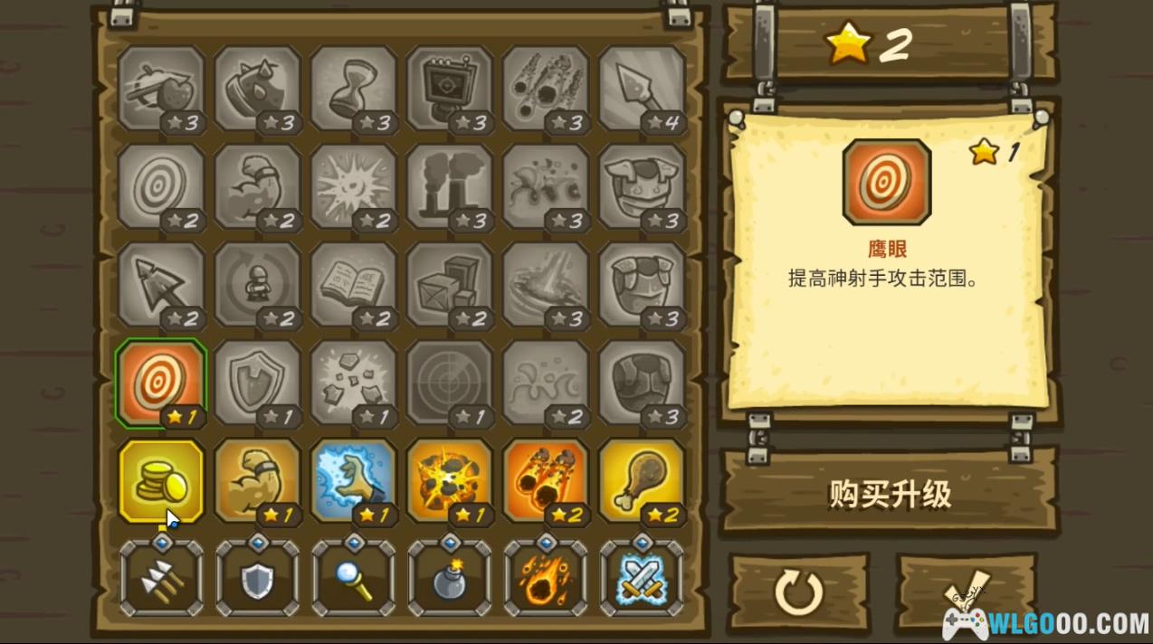 - 天赋成就:过关后,玩家可以获得星星作为天赋点,用于对 4 种建筑和两个特殊技能进行强化。